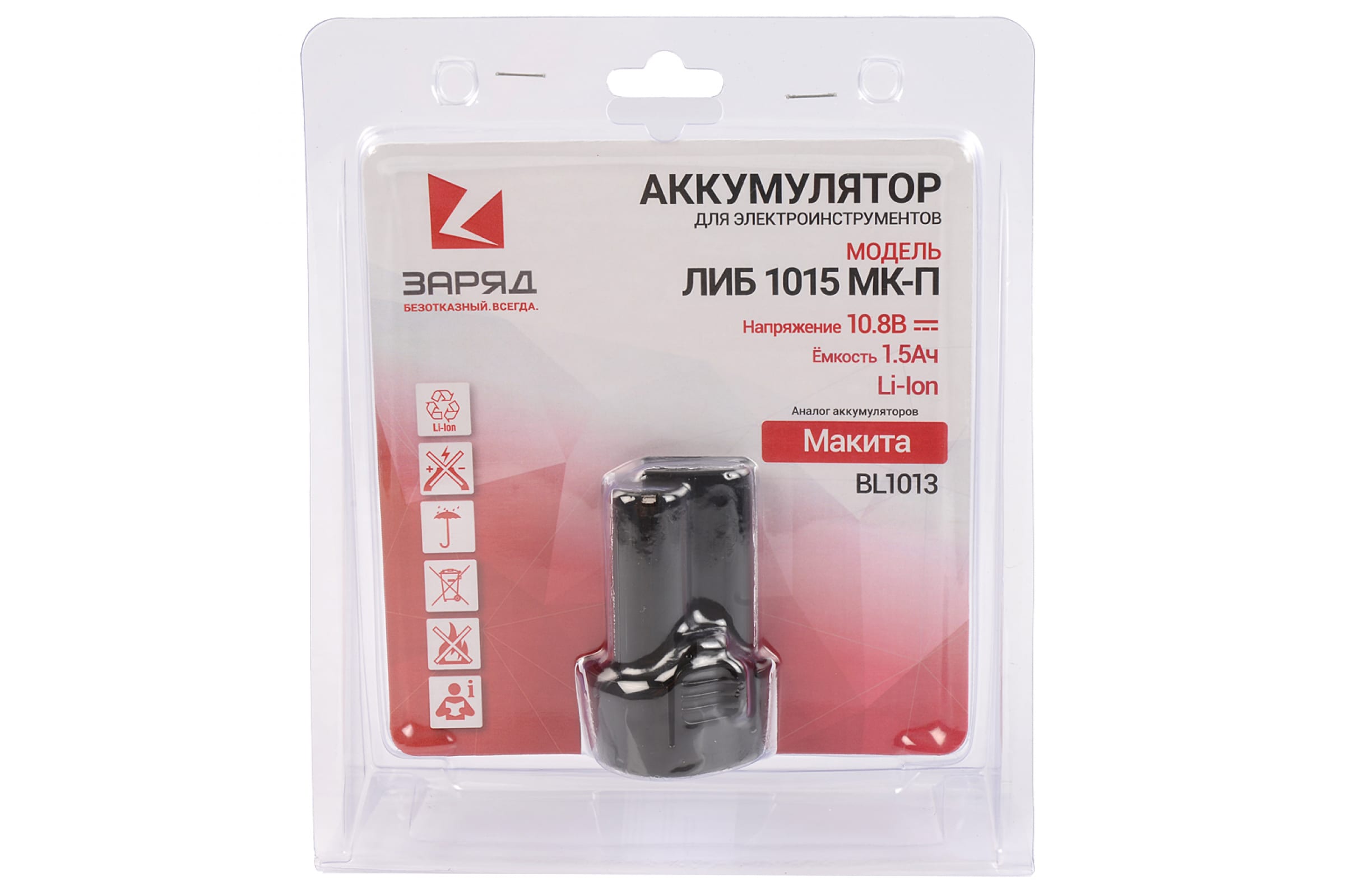 Аккумулятор для шуруповертов Макита (10.8В; 1.5Ач; Li-Ion) в блистере ЛИБ 1015 МК-П Заряд 6117102