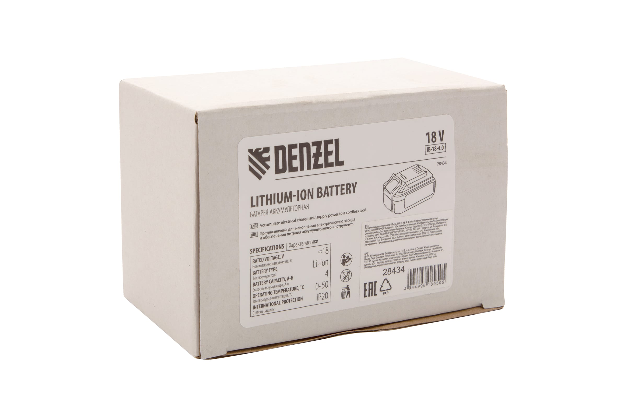 Батарея аккумуляторная IB-18-4.0 (4.0 Ач; 18 В; Li-Ion) Denzel 28434
