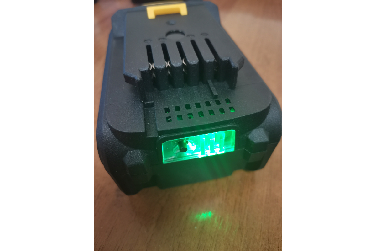 LED-индикация уровня заряда помогает мастеру понять, на какое время работы рассчитывать.