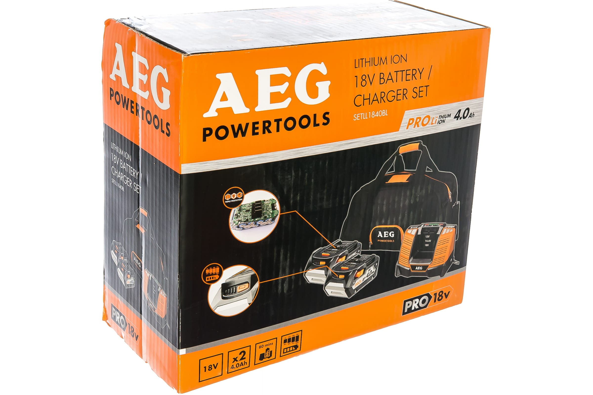 Набор 2 аккумулятора (Li-Ion, 18В, 4 Ач)+зарядное устройство SETLL1840BL AEG 4932464157
