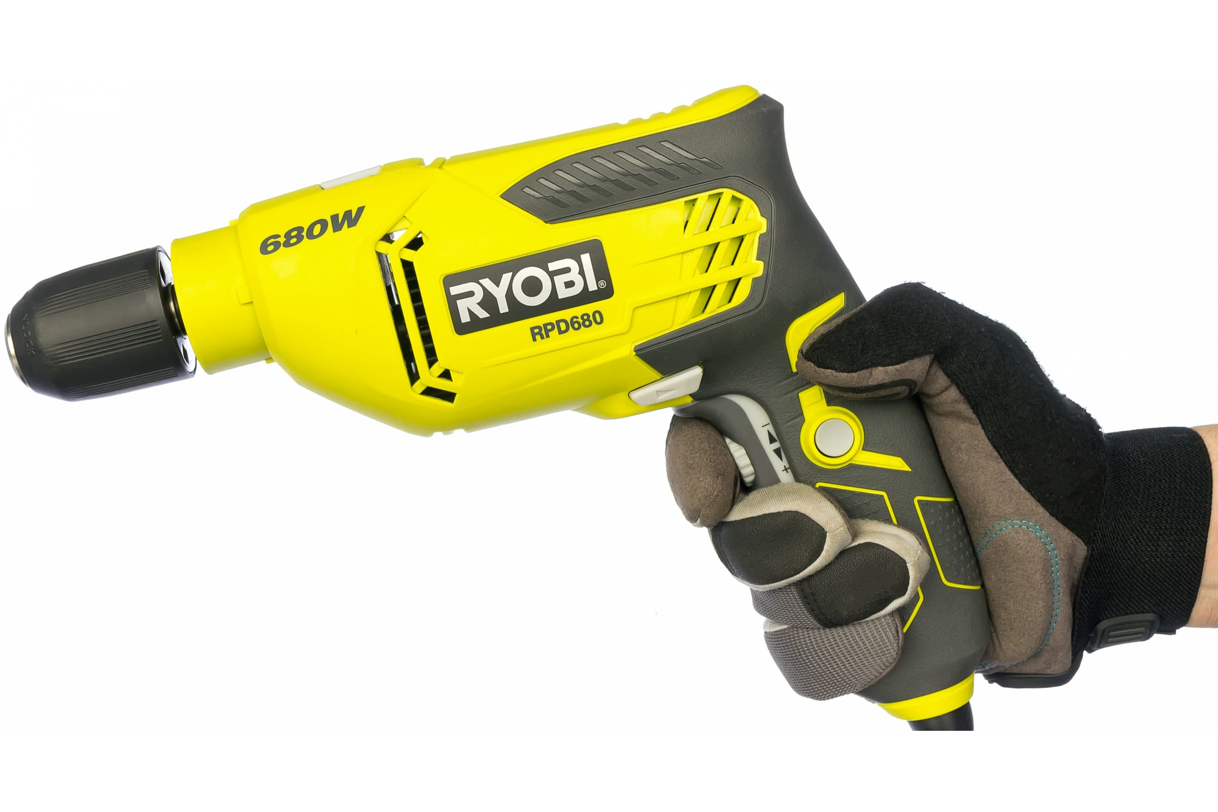 Для удобства выведения застрявшего в материале сверла ударная дрель Ryobi RPD680K 5133002016 имеет функцию реверса.