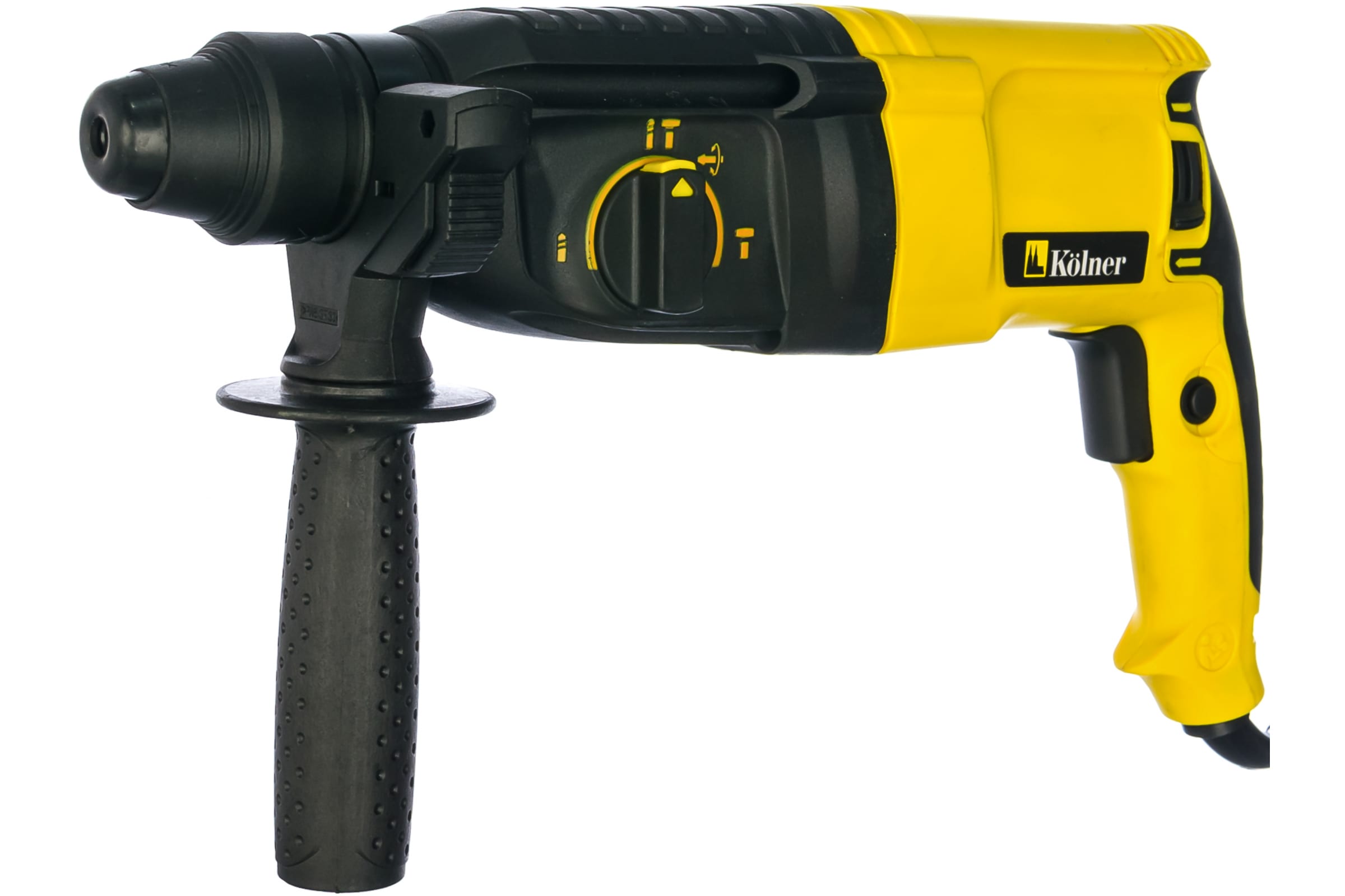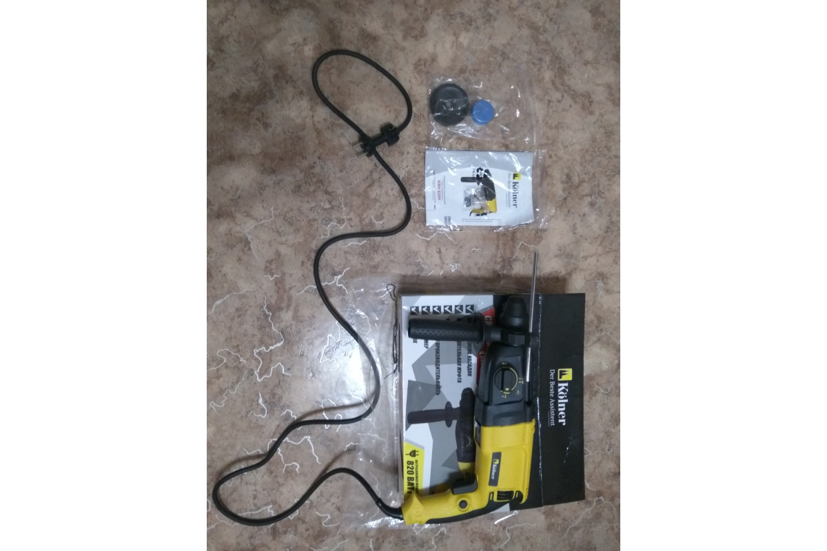 Перфоратор Kolner KRH 820H оснащен патроном SDS-plus, который способствует быстрой смене оснастки. Он имеет удобный переключатель, с помощью которого выбирают нужный режим работы: сверление, ударное сверление, долбление или поворот долота. Функция реверса представлена поворотом угольных щеток, что способствует их более длительному сроку службы, а также равной мощности при разностороннем вращении.