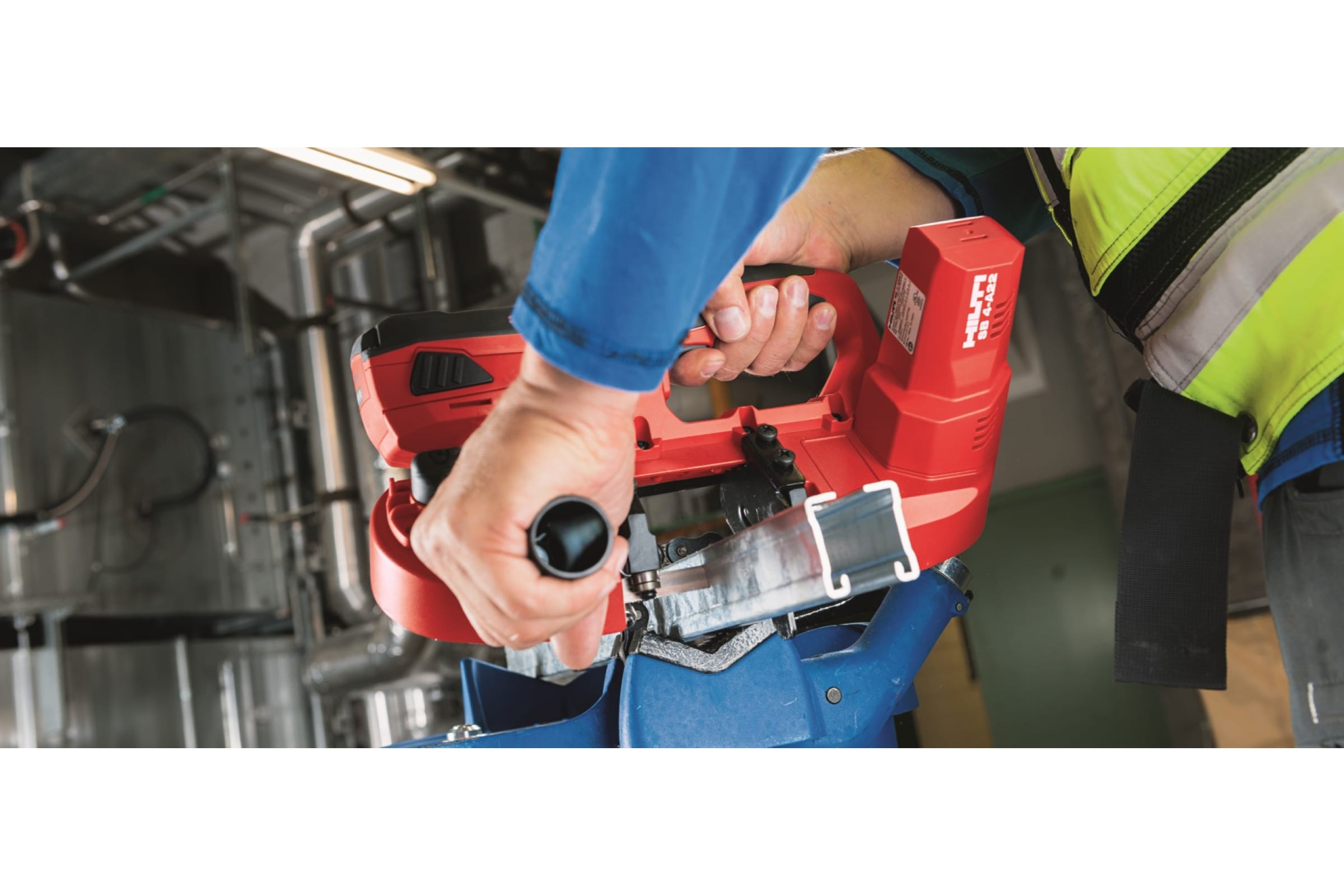 Аккумуляторная ленточная пила Hilti SB 4-A22 коробка 2202361 предназначена для выполнения прямолинейных распилов металла, труб, алюминиевых профилей.