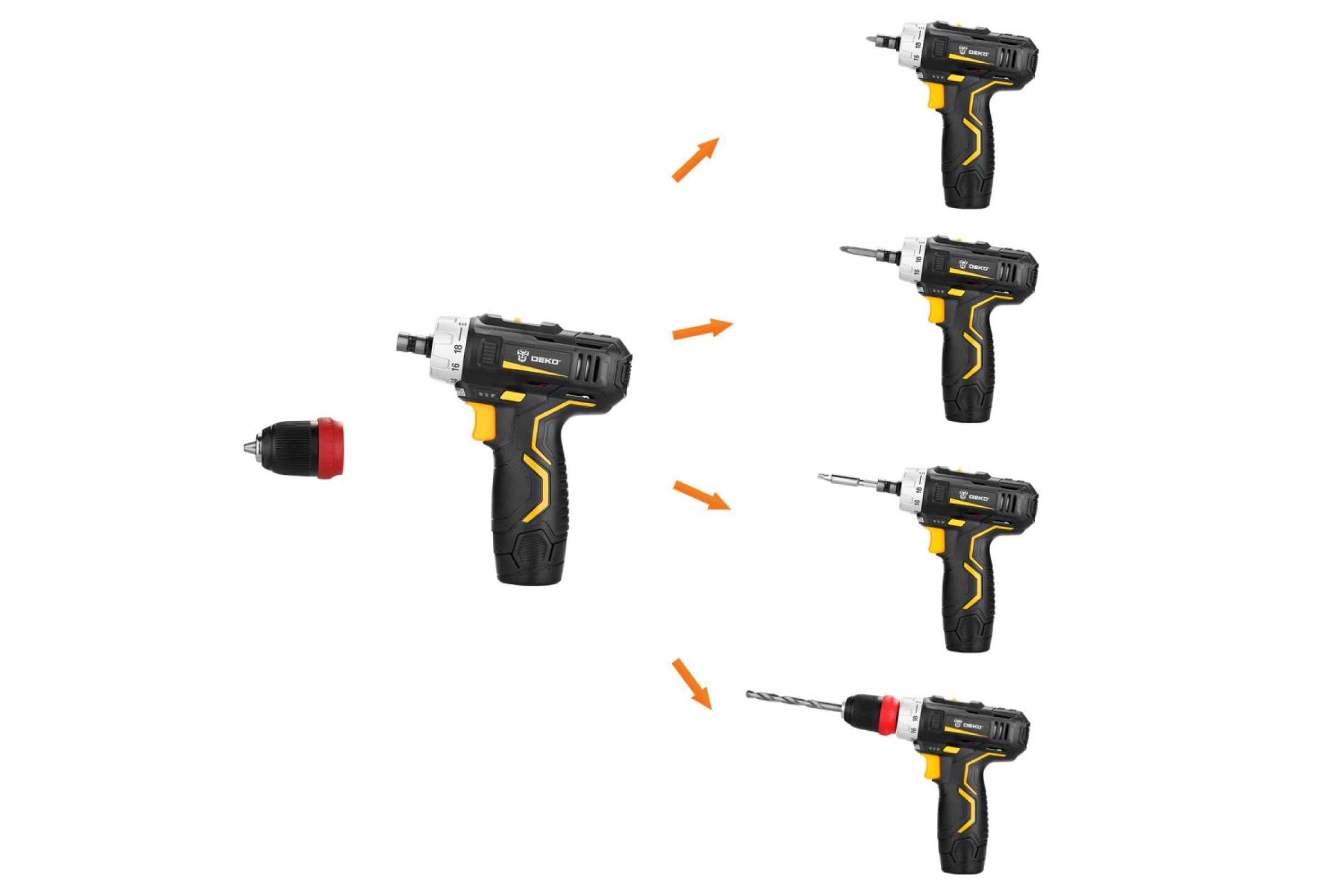 Регулировка частоты вращения для точной настройки DEKO GCD12DU3 Li-Ion 063-4114 под разные материалы