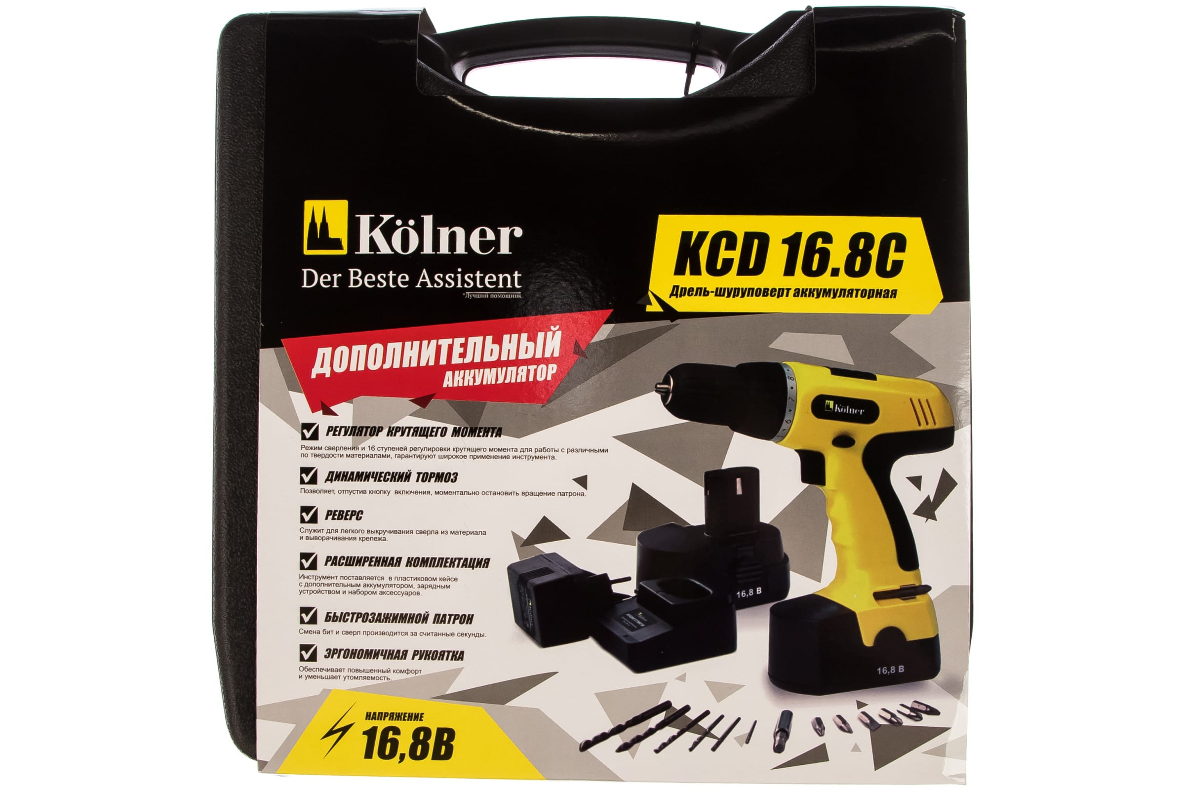 Кейс - для удобства хранения и транспортировки аккумуляторной дрели-шуруповерт Kolner KCD 16,8 С.