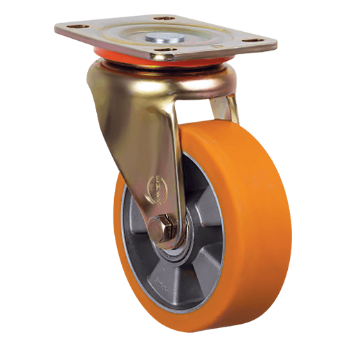 Большегрузное колесо EMES ED01 ABP 125 — это прочное долговечное изделие, для производства которого используются качественные износостойкие материалы. Обод выполнен из алюминия, защищенного от коррозионных изменений. Для изготовления шинки был выбран полиуретан — благодаря этому колесо не боится механических повреждений, не оставляет следов на поверхностях и хорошо поглощает вибрации. Широкий обод равномерно распределяет даже экстремальные нагрузки.