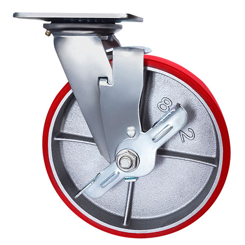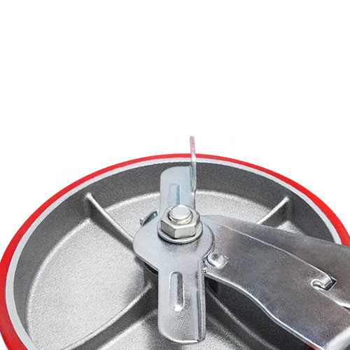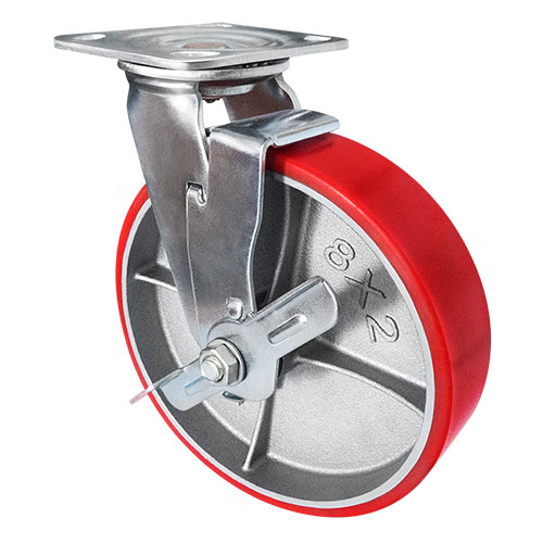 Колесо большегрузное полиуретановое поворотное с тормозом Longway SCPB63 предназначено для оснащения складского, транспортного строительного оборудования и тяжелых механизмов. Шинка выполнена из полиуретана. Материал отличается высокой износостойкостью и большой грузоподъемностью. Колесо отлично переносит динамические, статические и ударные нагрузки, хорошо служит на любых твердых поверхностях. Обод выполнен из чугуна, оснащен роликовым подшипником в оси и смазочным ниппелем. В поворотном механизме установлен двухрядный шариковый подшипник с пресс-масленкой. Кронштейн — сварной, изготовлен из оцинкованной листовой стали. Диапазон температур — от -35ºC до +50ºC.