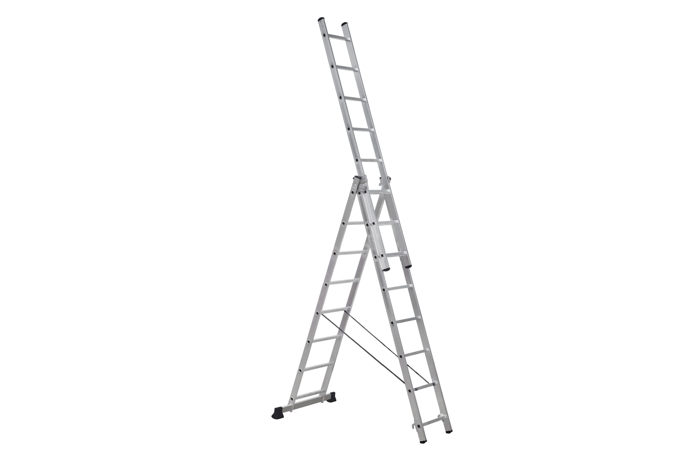 Алюминиевая трехсекционная лестница Scala 3х8 Sc 3008 идеально подходит для высотных работ на загородных участках, в мастерских и складах.