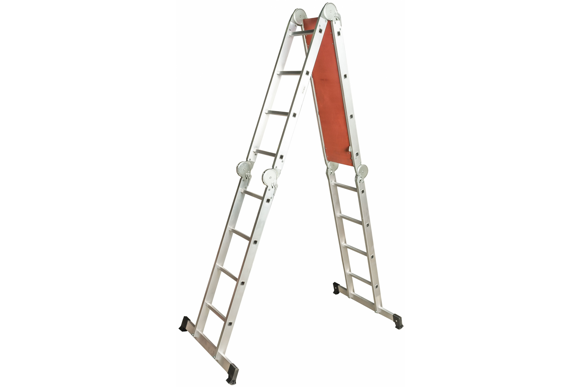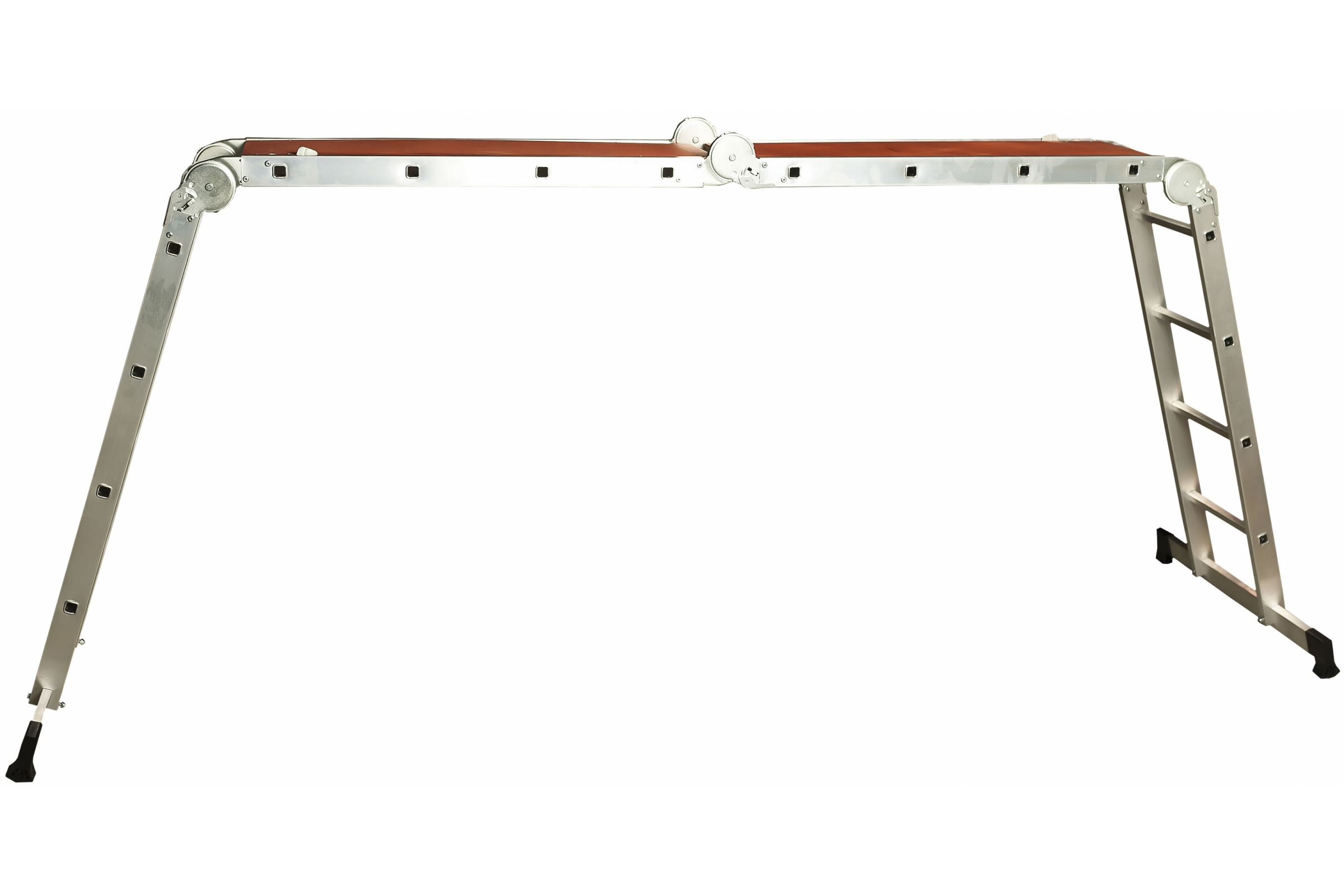 Лестница-трансформер 4х4 с помостом Inforce Л-Т-4-4-П имеет три пары подвижных стальных шарниров. Отличается быстрым механизмом трансформации. Устойчивость обеспечивают широкие поперечные траверсы. Лестница-трансформер сочетает в себе четыре функции: с