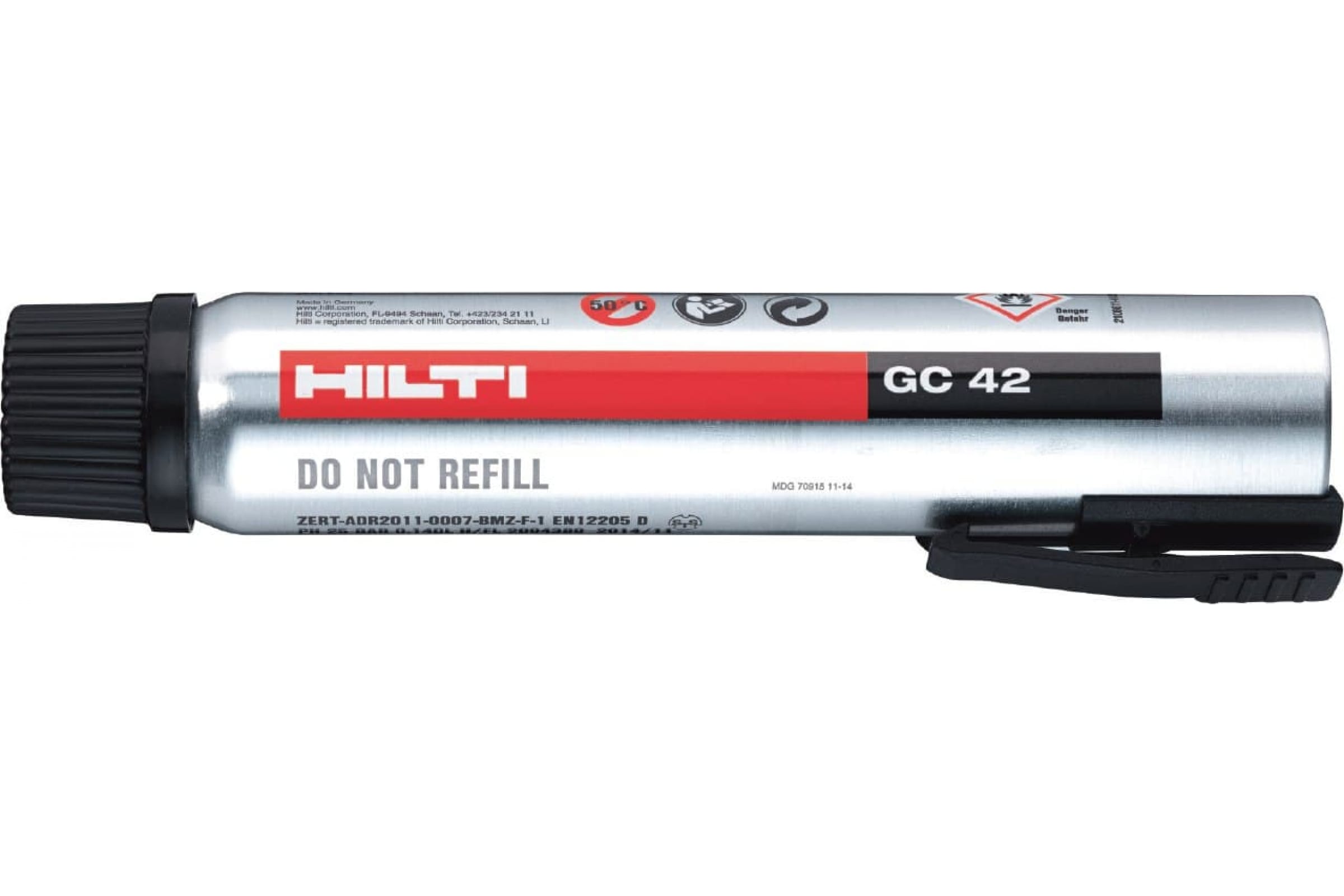 Газовый баллон Hilti GC 42 2105698 высокого давления предназначен для газового монтажного пистолета GX 3 предназначен для газового монтажного пистолета GX 90-WF. Содержит такие вещества, как 1-бутен, пропен, пропан.