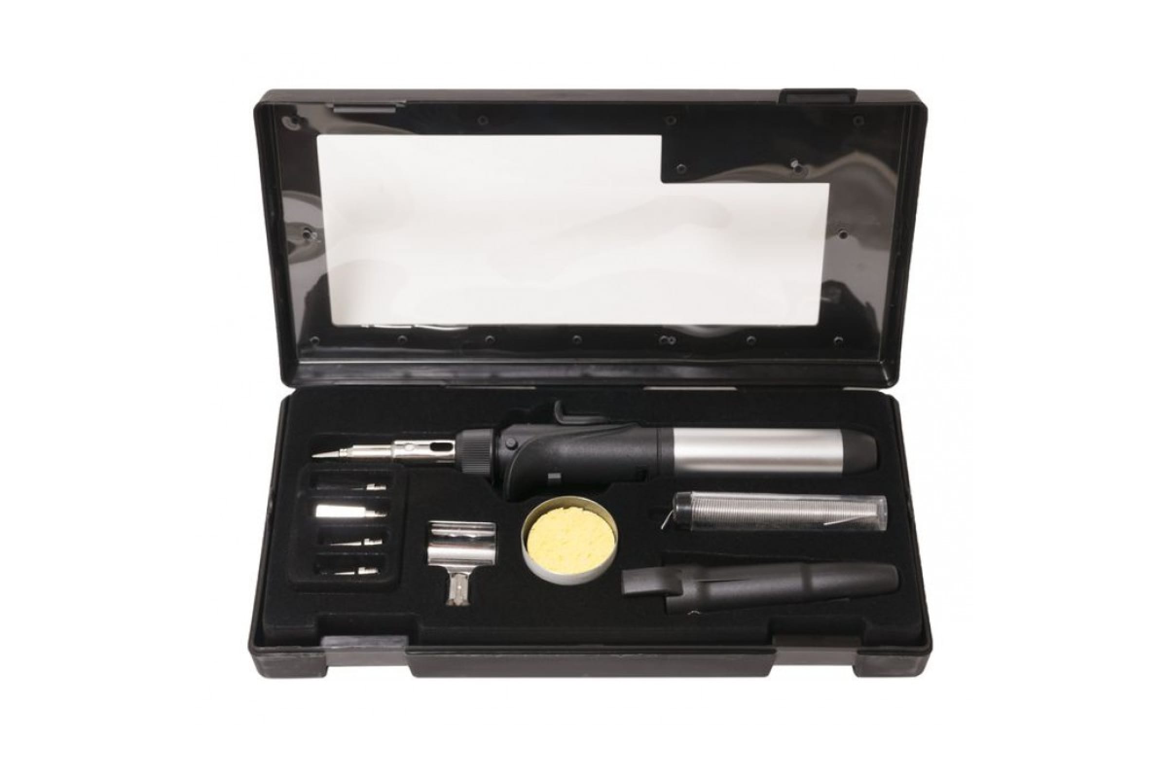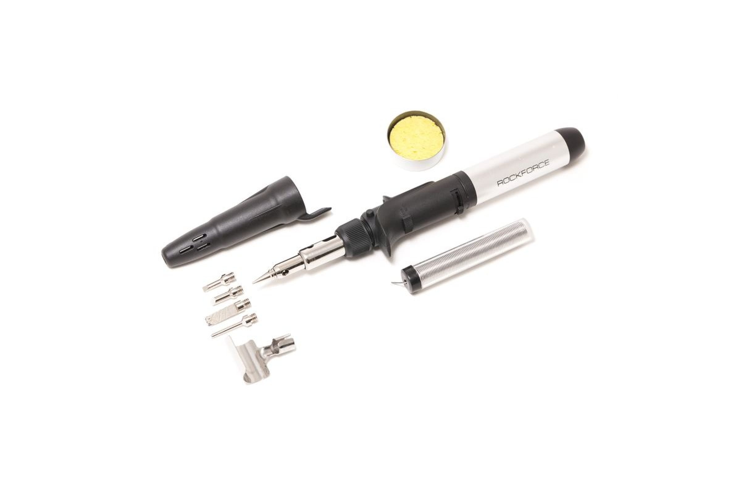 Газовый паяльник в наборе с насадками и приспособлениями ROCKFORCE 9 предметов, в кейсе RF-249BSI