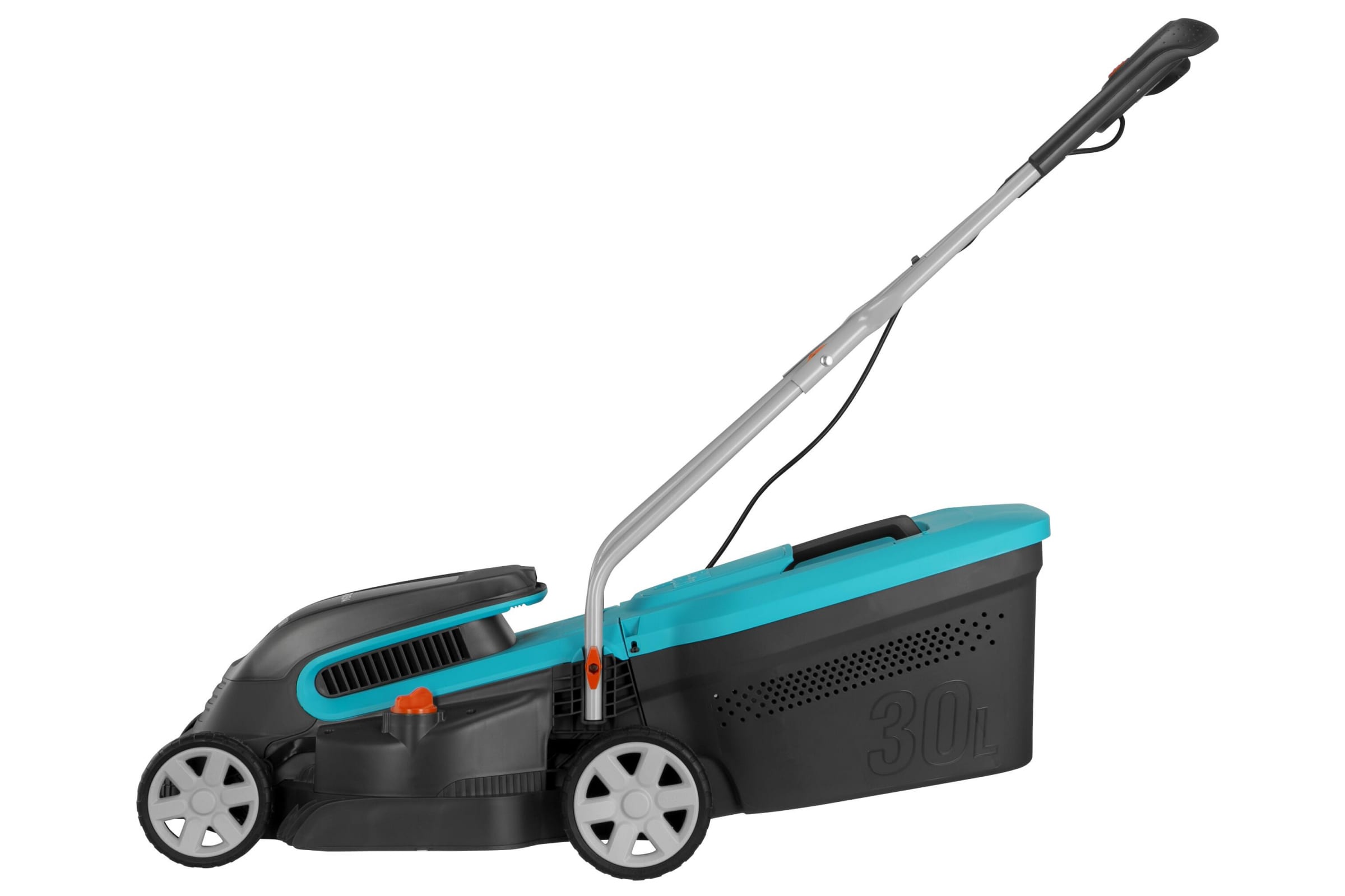 Травосборник объемом 30 литров, обеспечивает продолжительную работу, так как он не нуждается в частом опустошении.