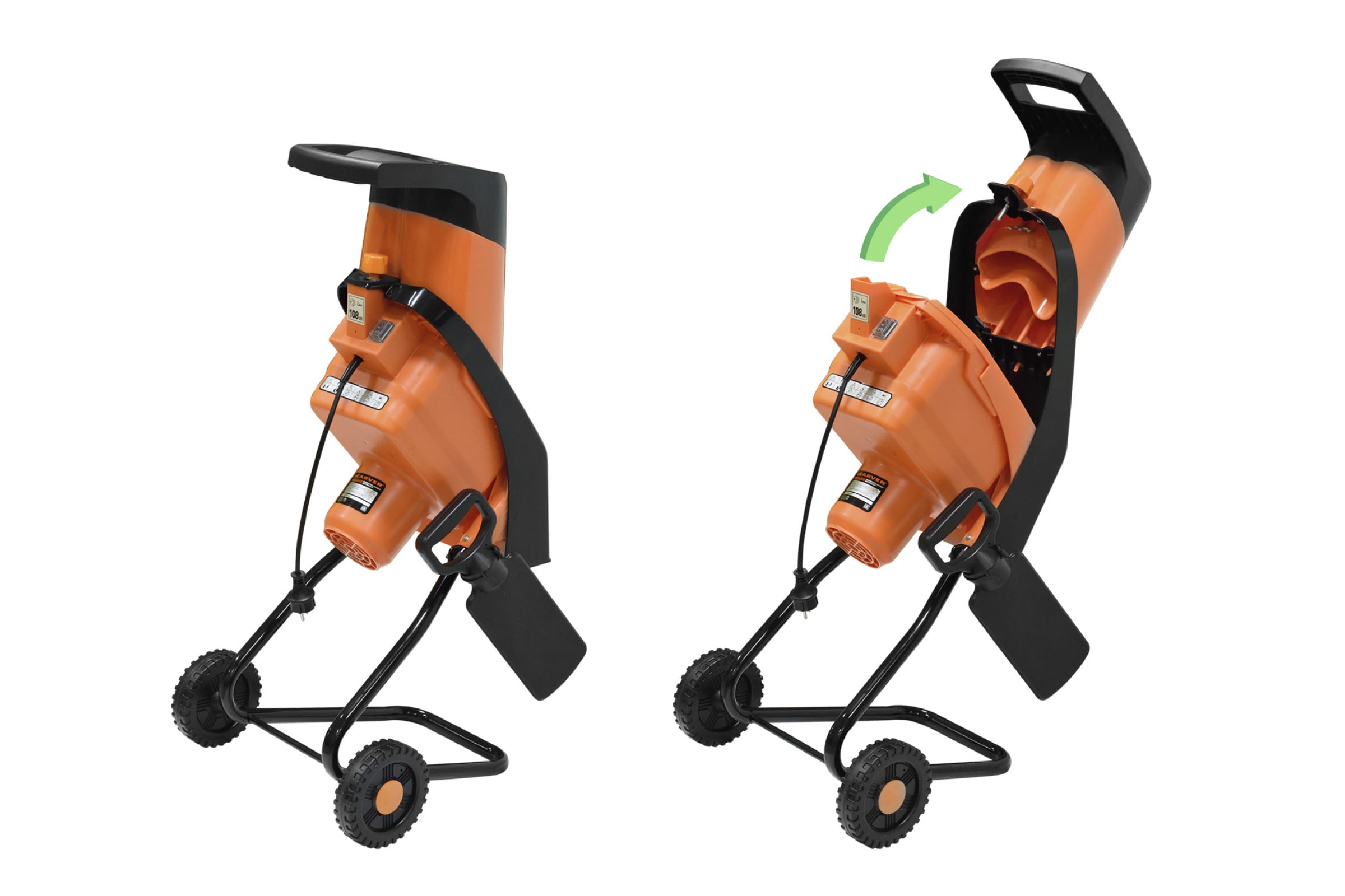 Измельчитель оснащен двумя колесами большого радиуса - для более удобной транспортировки CARVER SH 2400E 01.005.00010.