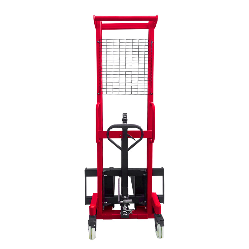 С заботой о безопасности оператора, на штабелере установлена защитная металлическая сетка. С целью повышения комфорта работы, на штабелере имеется курок для опускания вил, педаль для спуска и дополнительная ножная педаль, а рукоять управления имеет прорезиненное покрытие.