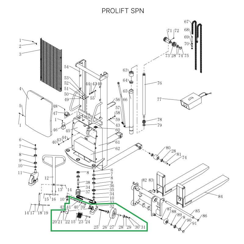 Поворотная опора с тормозом для поворотных колес для штабелеров SPN (в сборе с колесом)