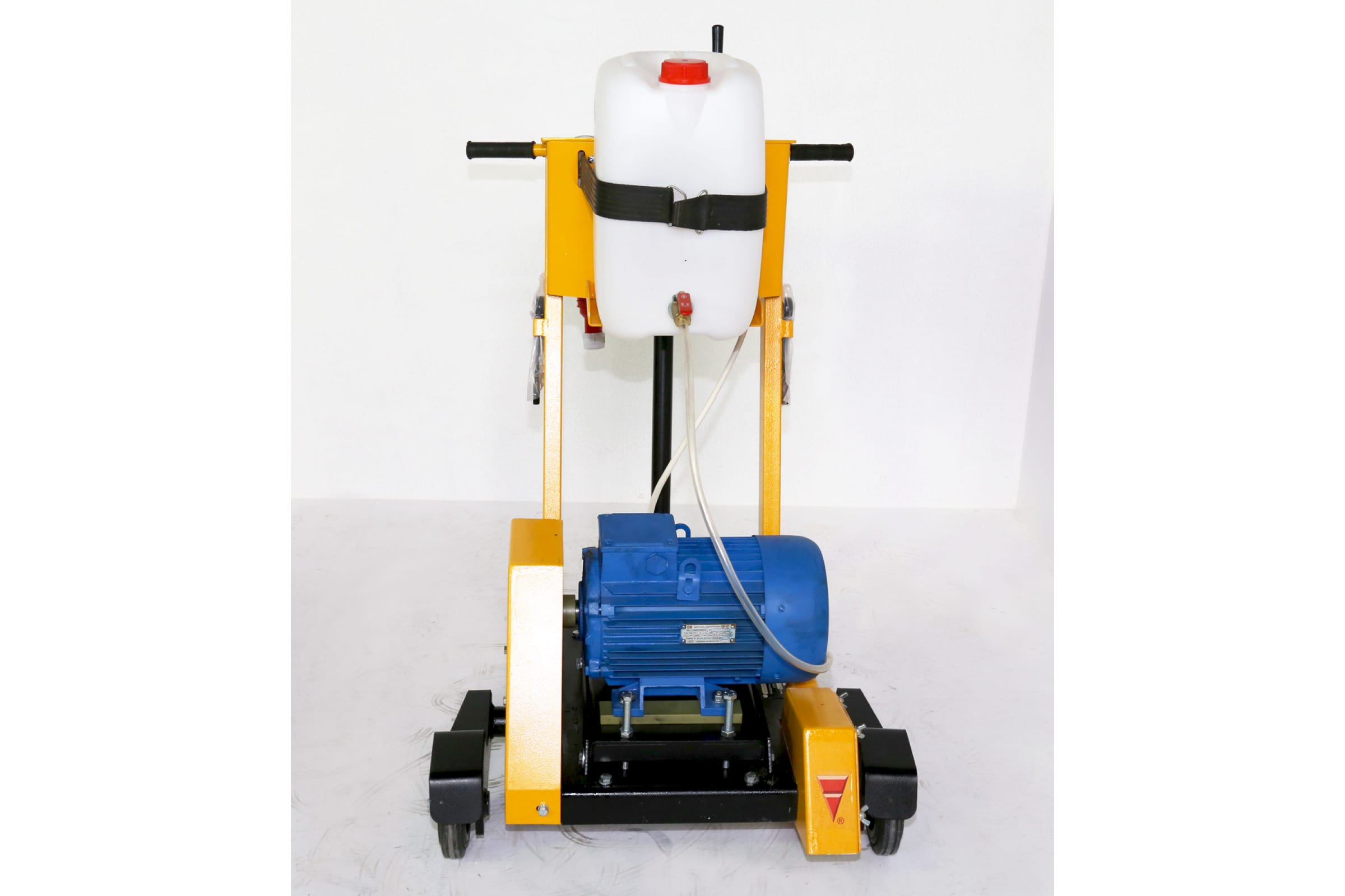 Своевременная подача воды в зону резания охлаждает алмазный диск и уменьшает пылеобразование. Транспортировочные колеса упрощают перемещение оборудования внутри рабочей зоны.