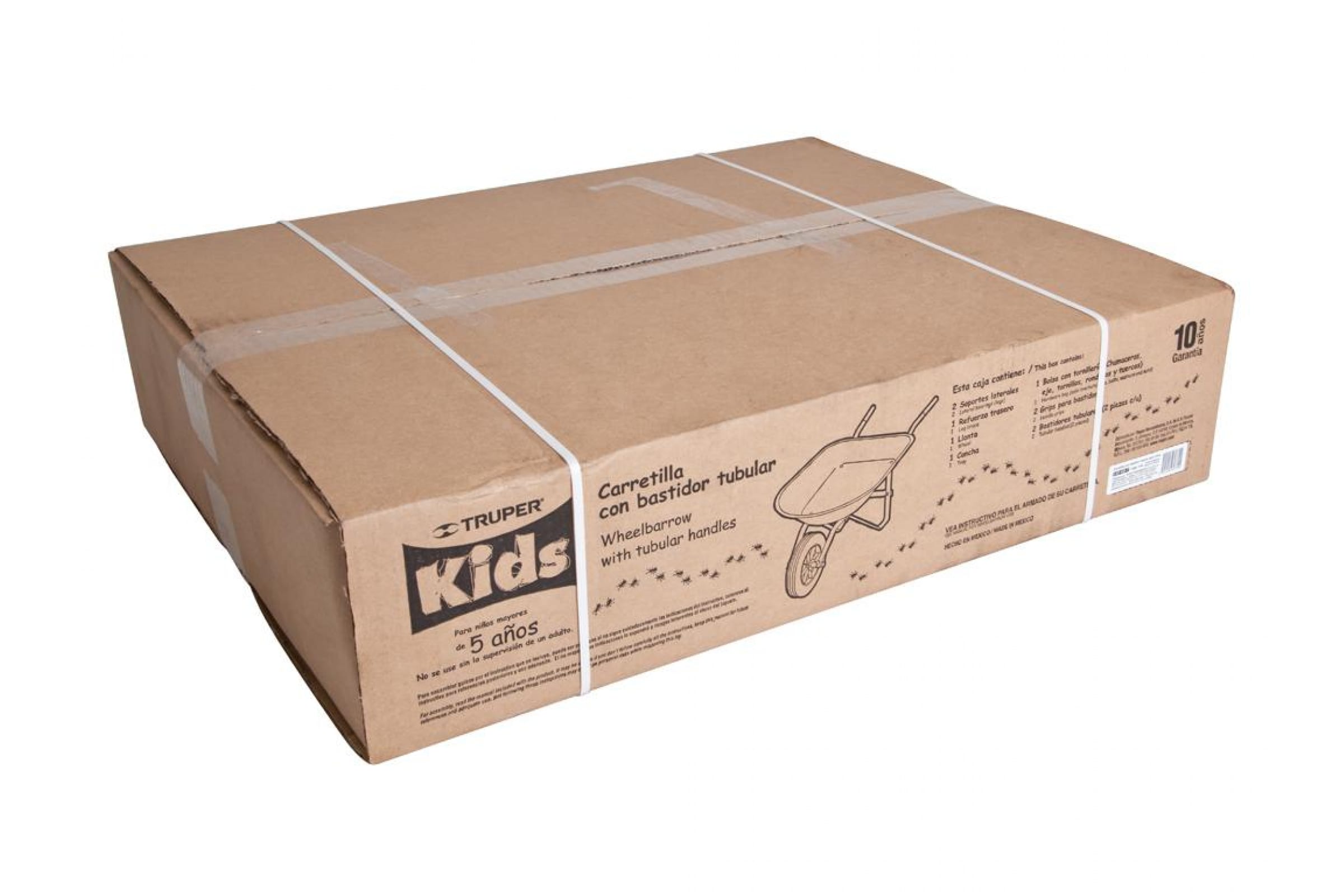 Детская тачка TRUPER CAT-KID-T 10440 подойдет для использования на садовом участке, например, перетаскивания мусора, удобрений, земли и т.п. Изделие имеет небольшой размер и вес, что подойдет для использования детьми от 5 лет. Прочная конструкция оснащена ручками и одним колесом для транспортировки тележки. Размер рабочей части - 870х400 мм.