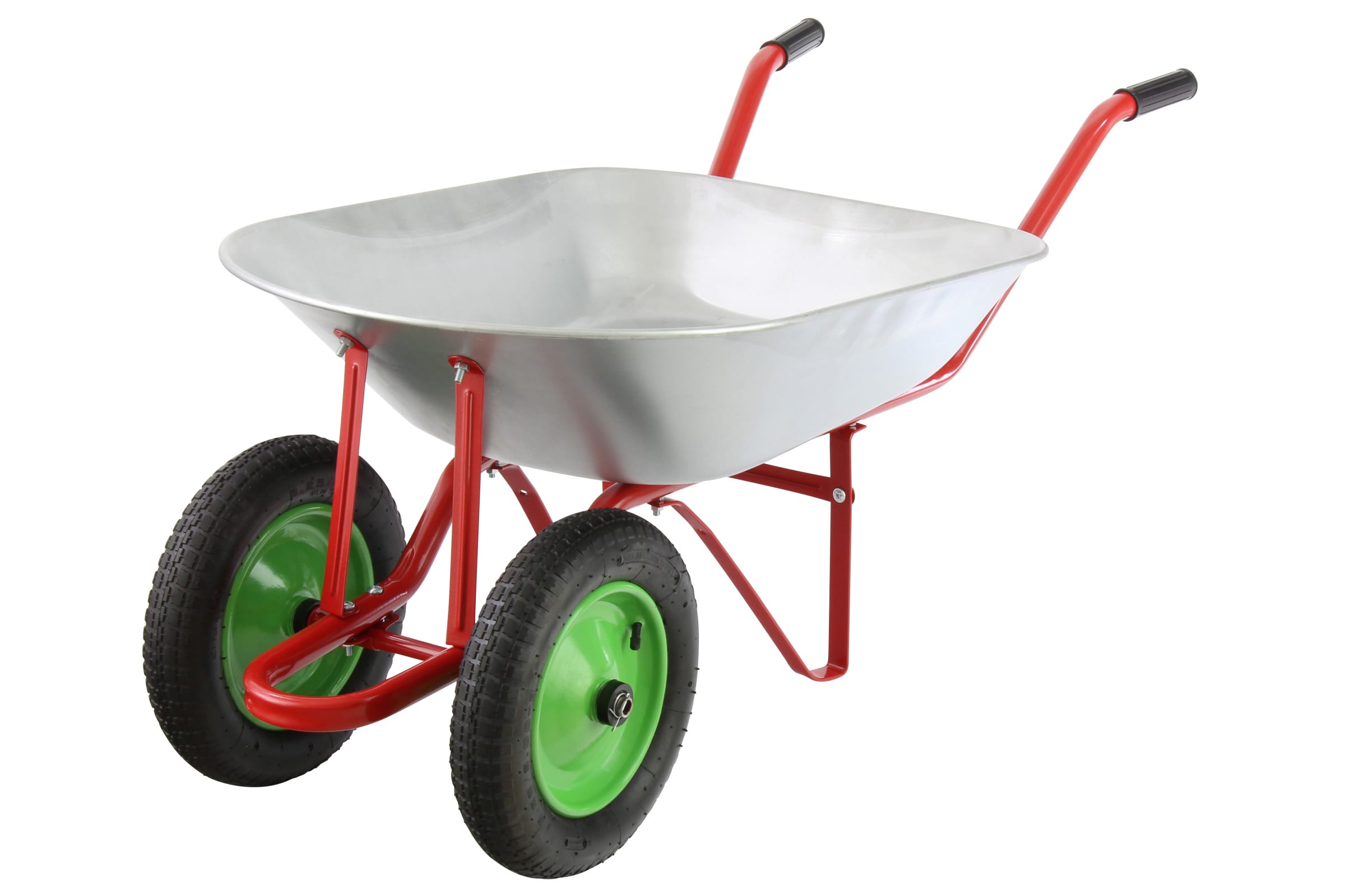 Садовая тачка с двумя колесами СТРОЙМАШ грузоподъемность 180 кг, объем 65 л 103015 используется на строительных площадках и на садовых и дачных участках. Предназначена для перемещения сыпучих грузов объемом до 65 литров.