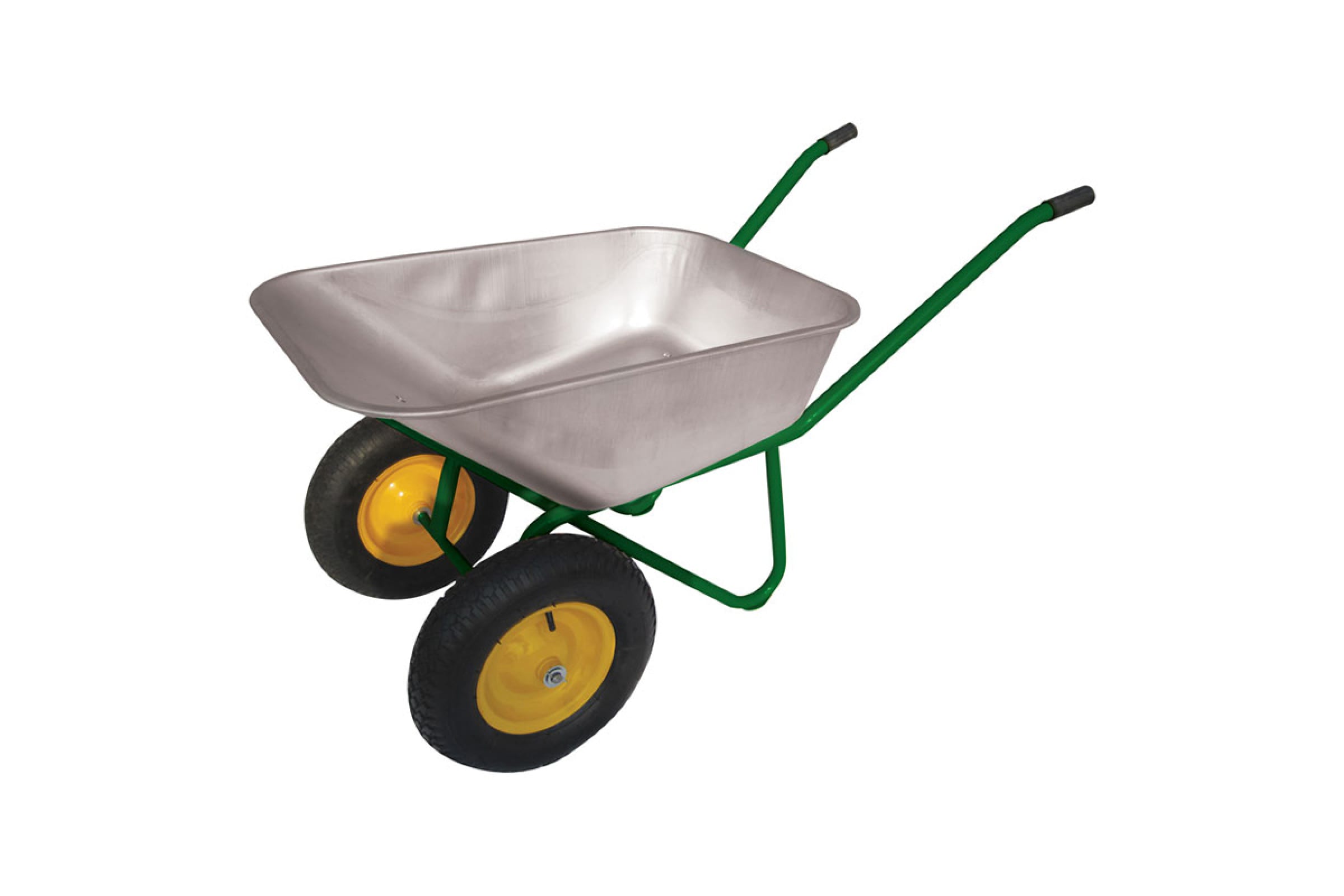 Два пневматических колеса облегчают перевозку тяжелых грузов и снижают риск опрокидывания.