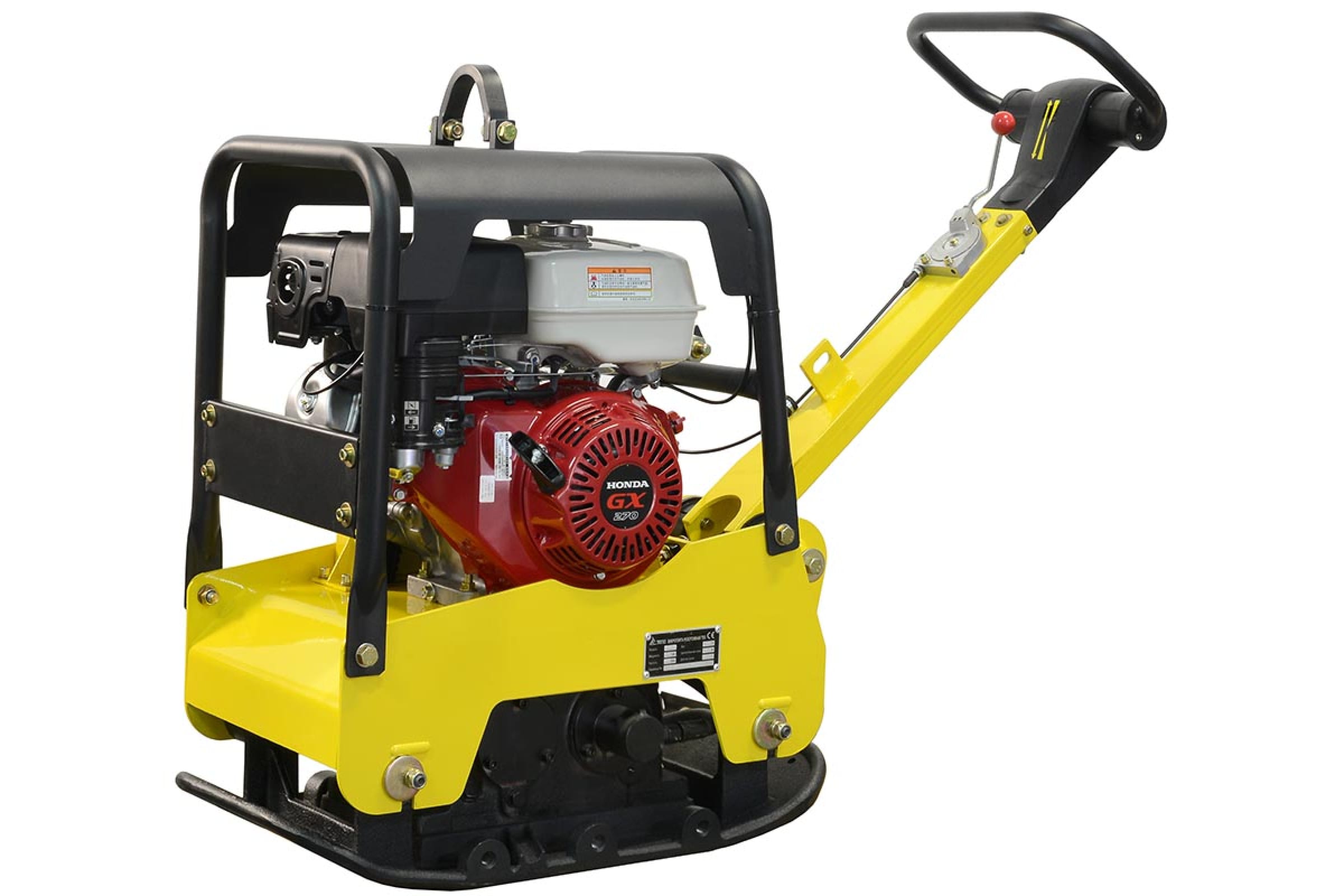Защитная рама над двигателем оснащена специальным упором для поднятия виброплиты краном.