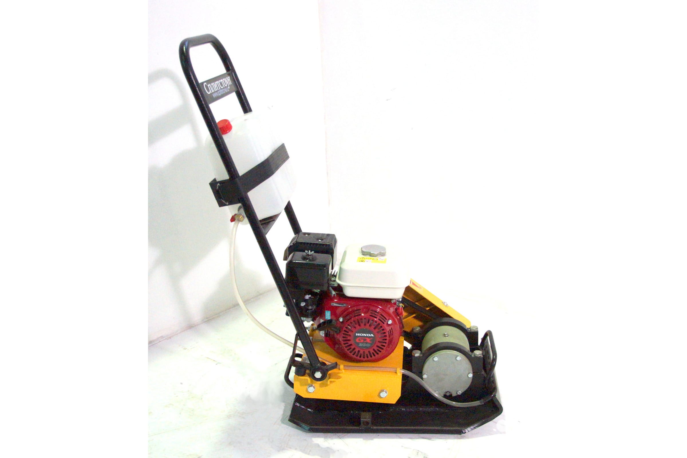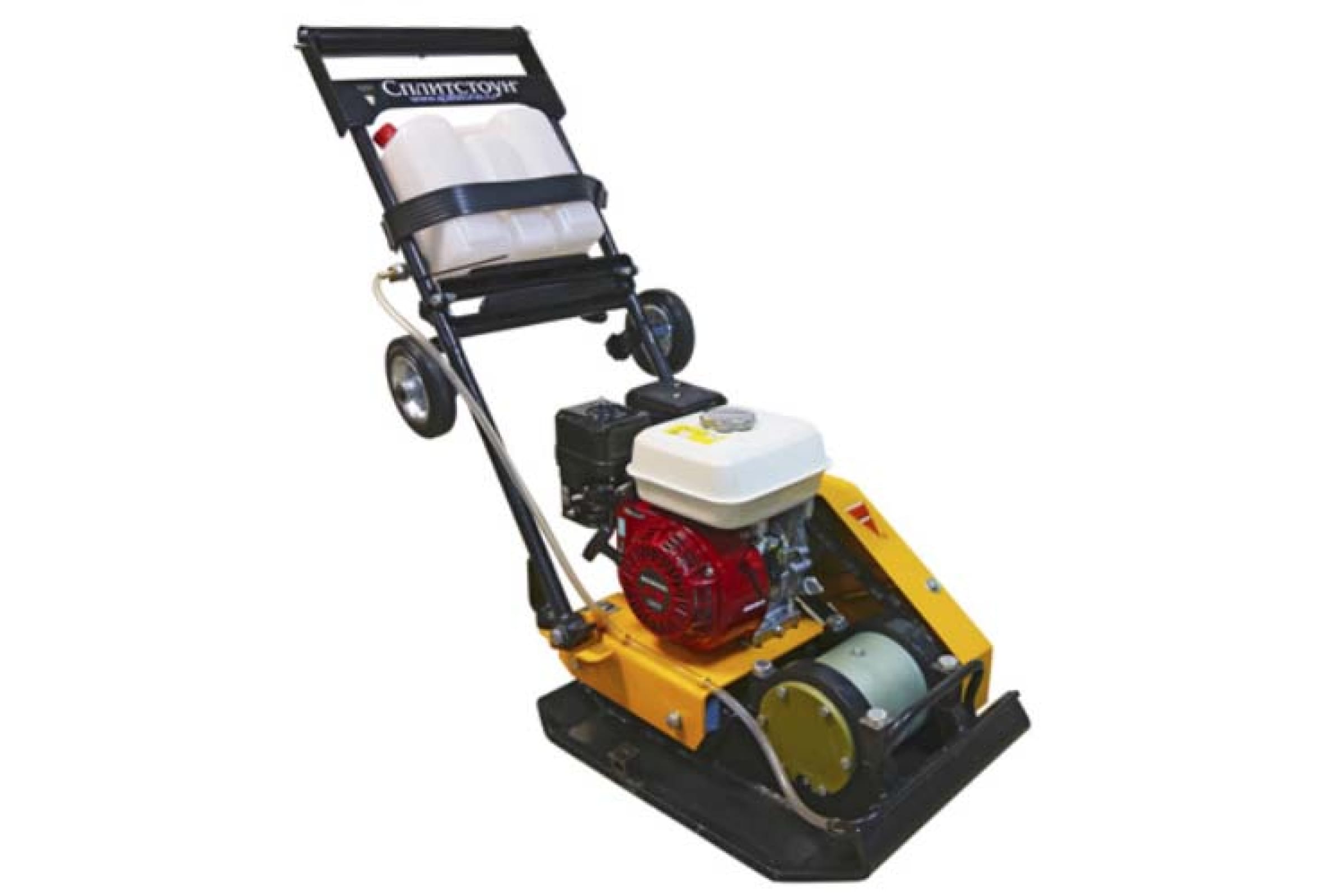 Закругленная форма плиты не оставляет полос на бетоне. Система орошения поверхности исключает налипание сыпучих материалов на подошву. Эргономичное водило и виброизолирующая рукоять способствуют легкому управлению (повороты, движение назад).