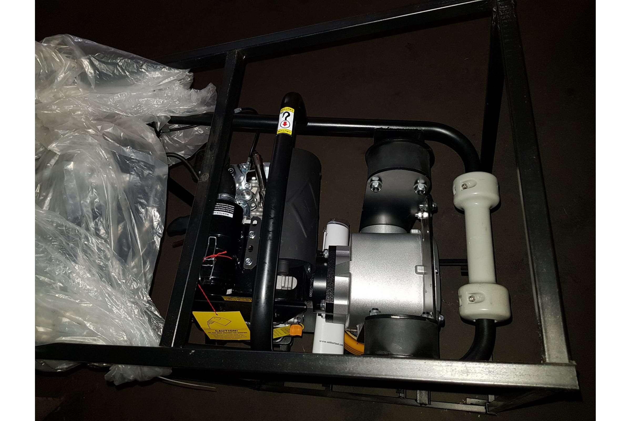 Конструкция защищена от падения специальной рамой сбоку и сверху. Интегрированный топливный клапан обеспечивает быстрый запуск двигателя. Наличие транспортировочных колес упрощает перемещение оборудования внутри рабочей зоны.