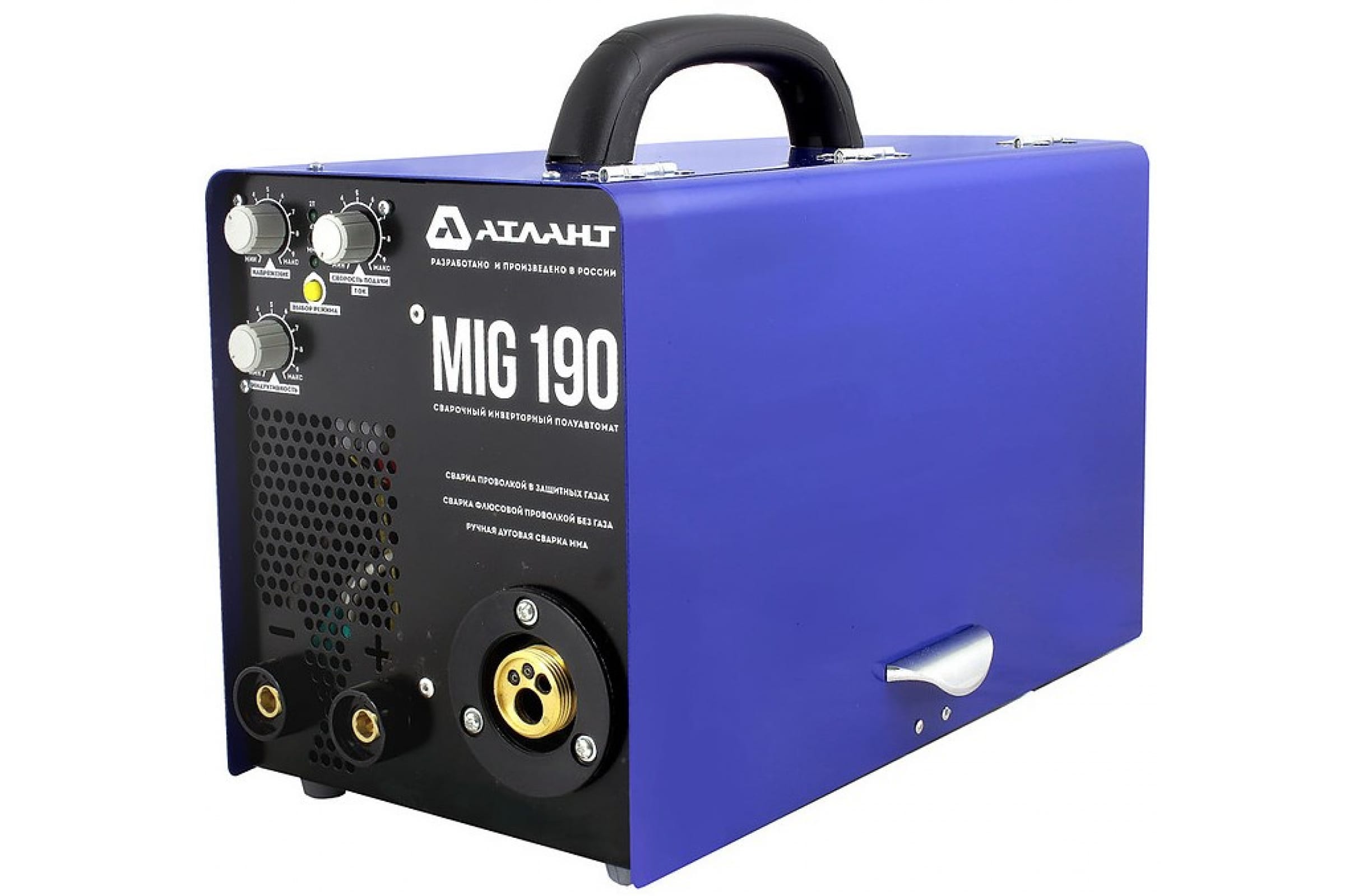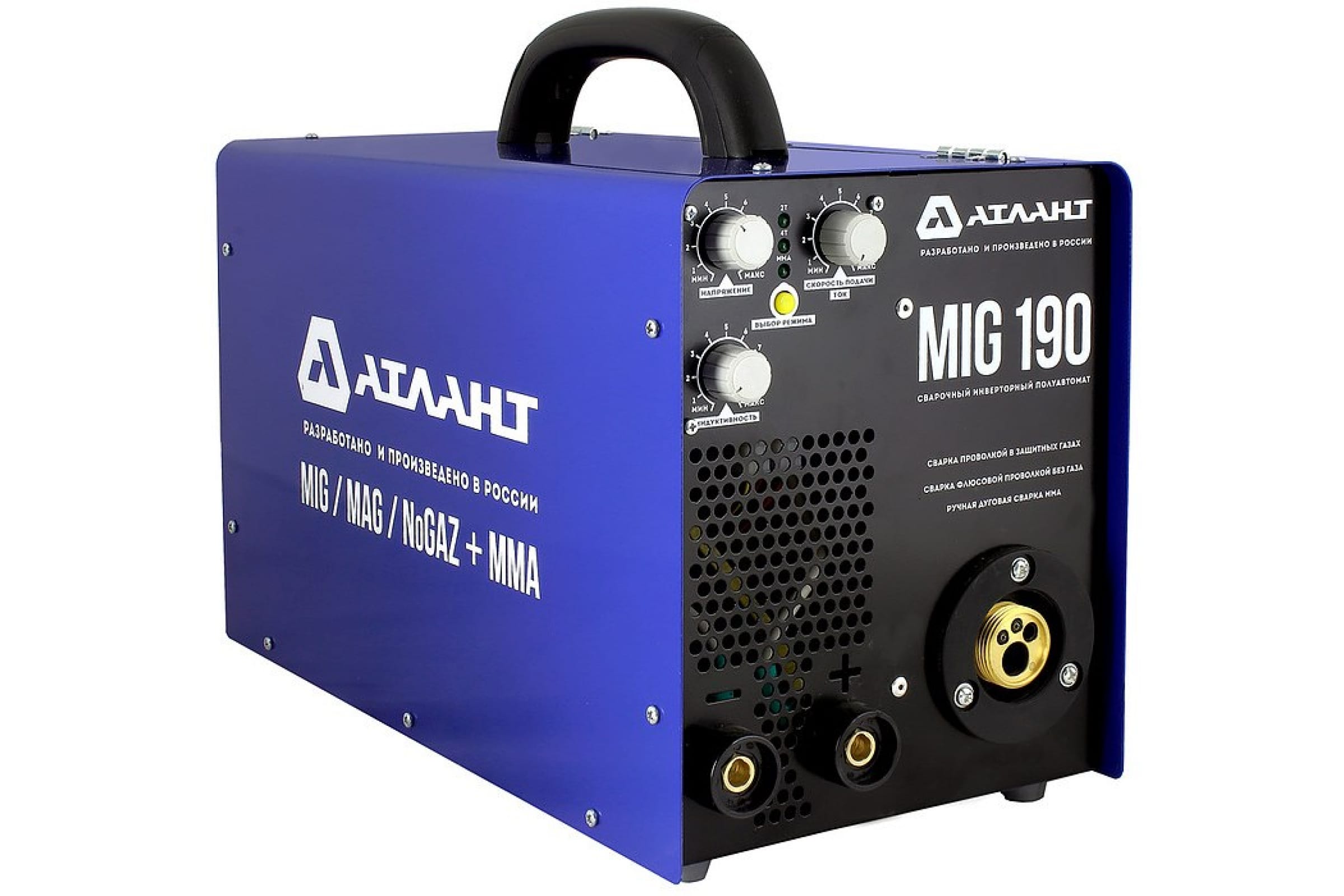Сварочный инверторный полуавтомат АТЛАНТ MIG 190К обеспечивает качественное и долговечное соединение металлических деталей методом сварки омедненной/нержавеющей проволокой в среде защитного газа, порошковой проволокой, плавящимися электродами. Возможно