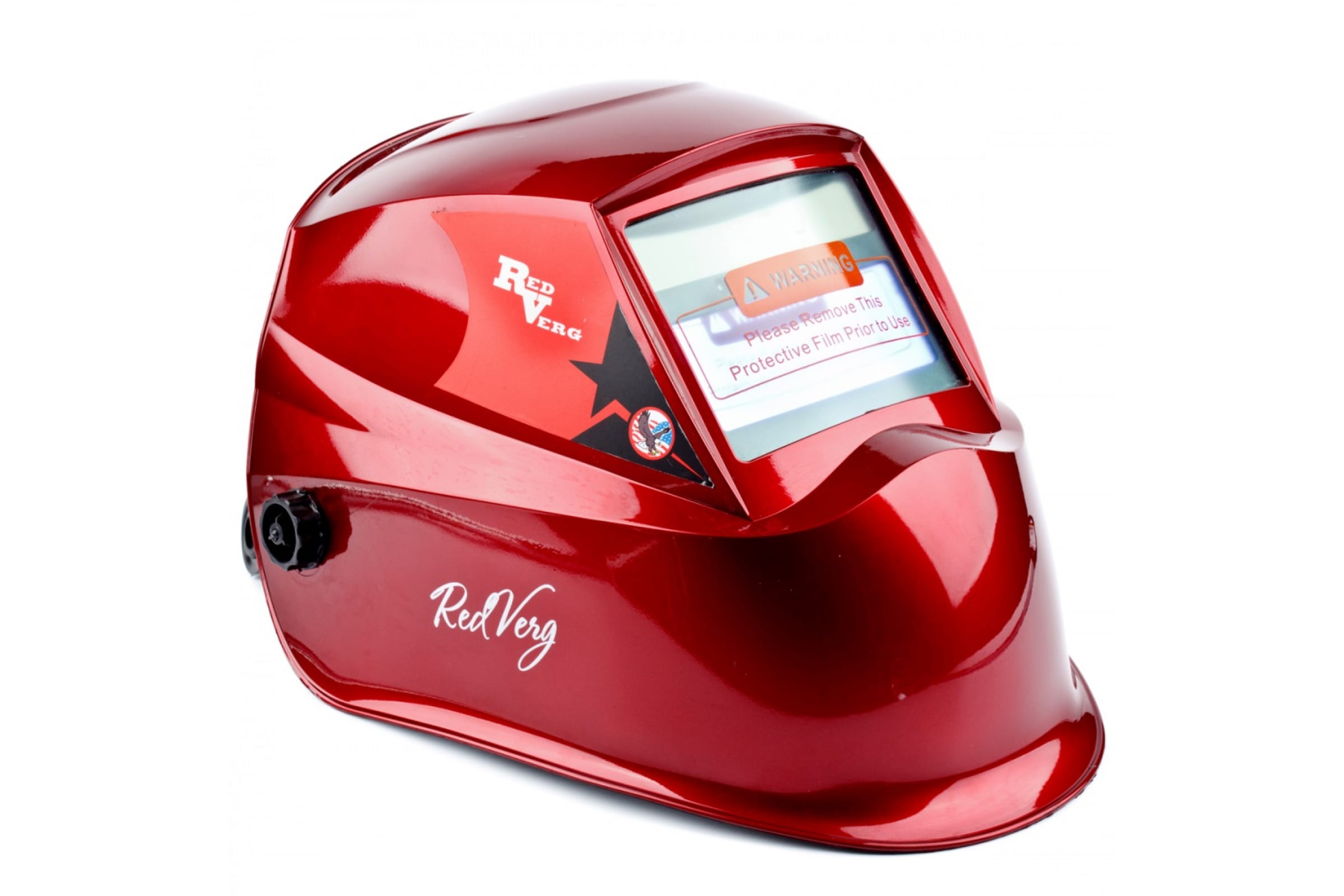 Маска сварщика REDVERG хамелеон RD-WM 605 красный АСФ600GR 5022229 предназначена для защиты глаз, лица и головы от искр расплавленного металла, уф-излучений и яркого света, обеспечивая безопасность во время сварочных работ.