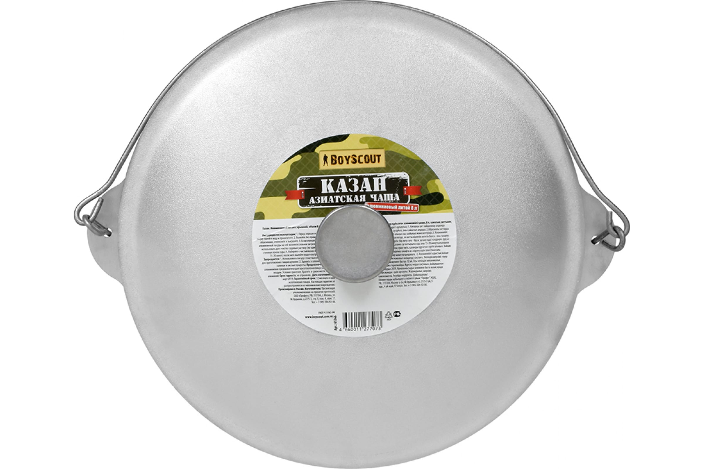 Литой алюминиевый казан с крышкой BOYSCOUT 8 л, азиатская чаша 61366