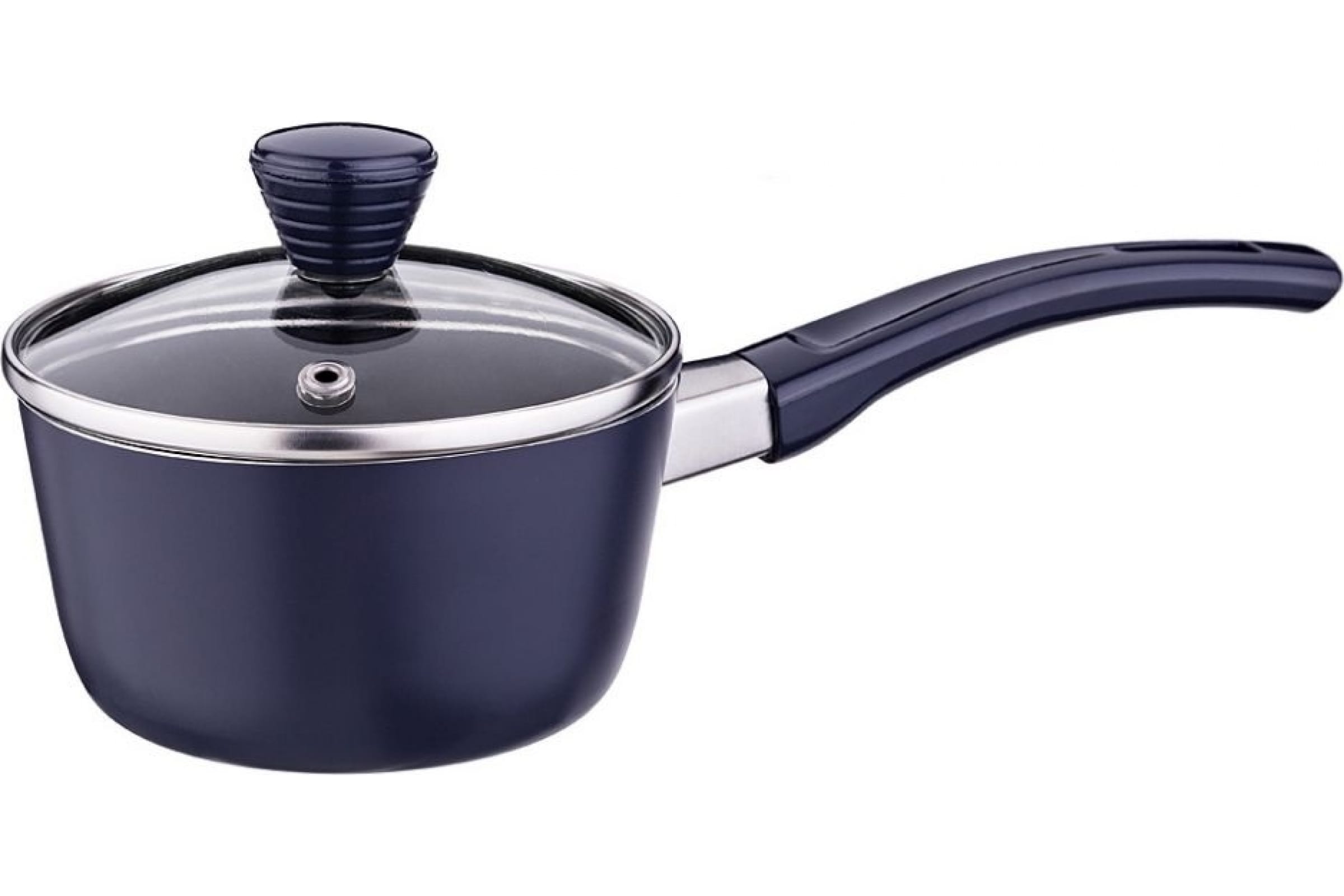 Ковш Agness BLACK MARBLE с антипригарным покрытием и стеклянной крышкой, 600 мл, без упаковки, 12х6 см 906-202