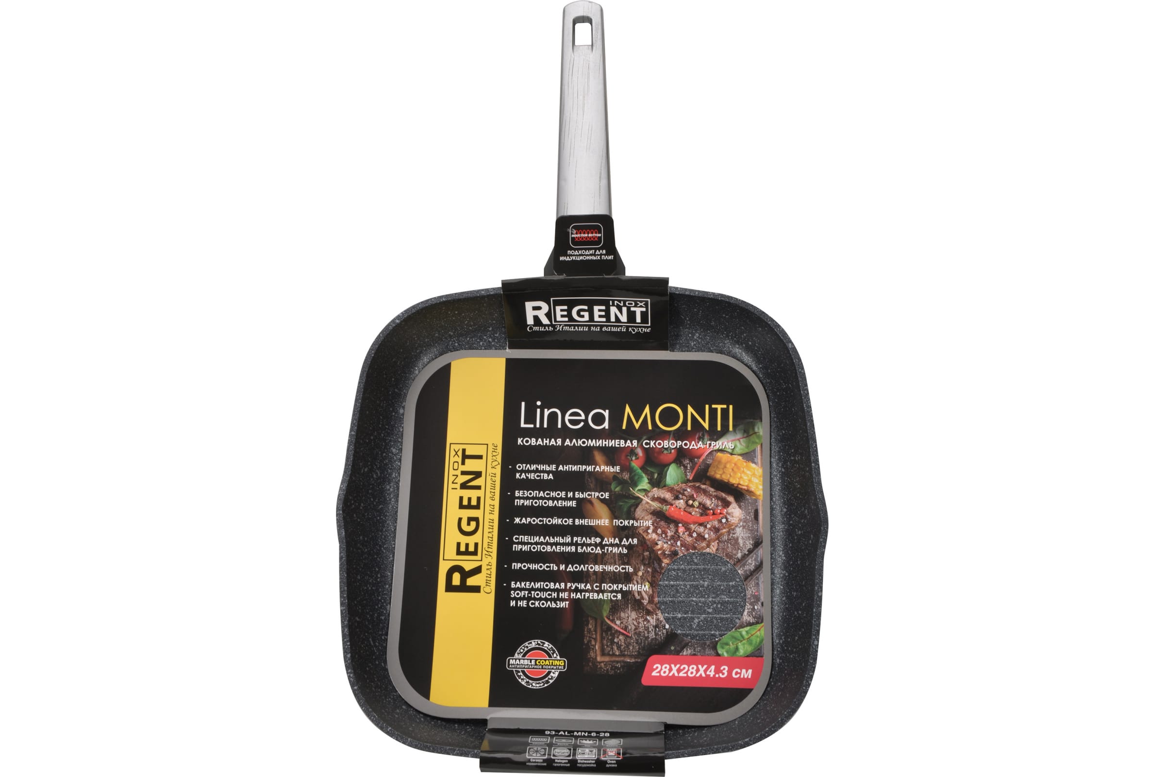 Сковорода-гриль Regent inox Linea MONTI индукция 28x28x4.3 см 93-AL-MN-6-28