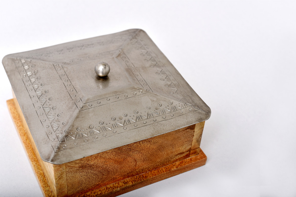 Большая квадратная шкатулка Abby & John Molly из дерева с металлической крышкой