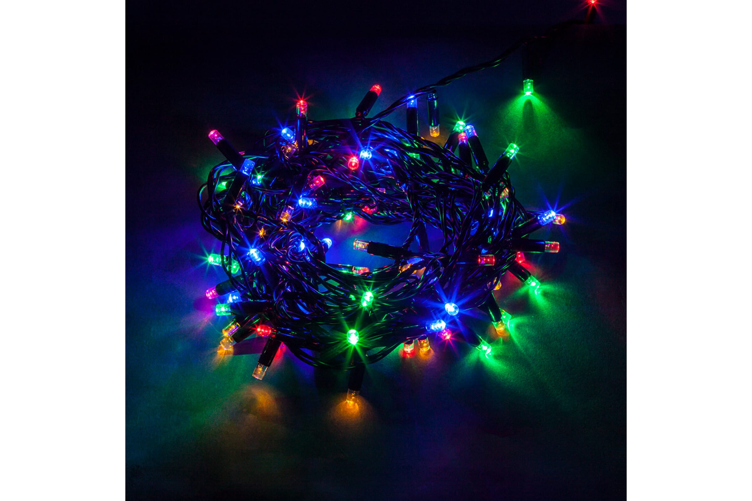 Линейная гирлянда FERON CL33 100 LED, СТАТИЧНОЕ СВЕЧЕНИЕ, мульти, 10 м +1.5м, черный шнур 32425