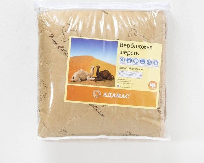 Одеяло облегчённое Адамас "Верблюжья шерсть", размер 140х205 ± 5 см, 200гр/м2, чехол п/э