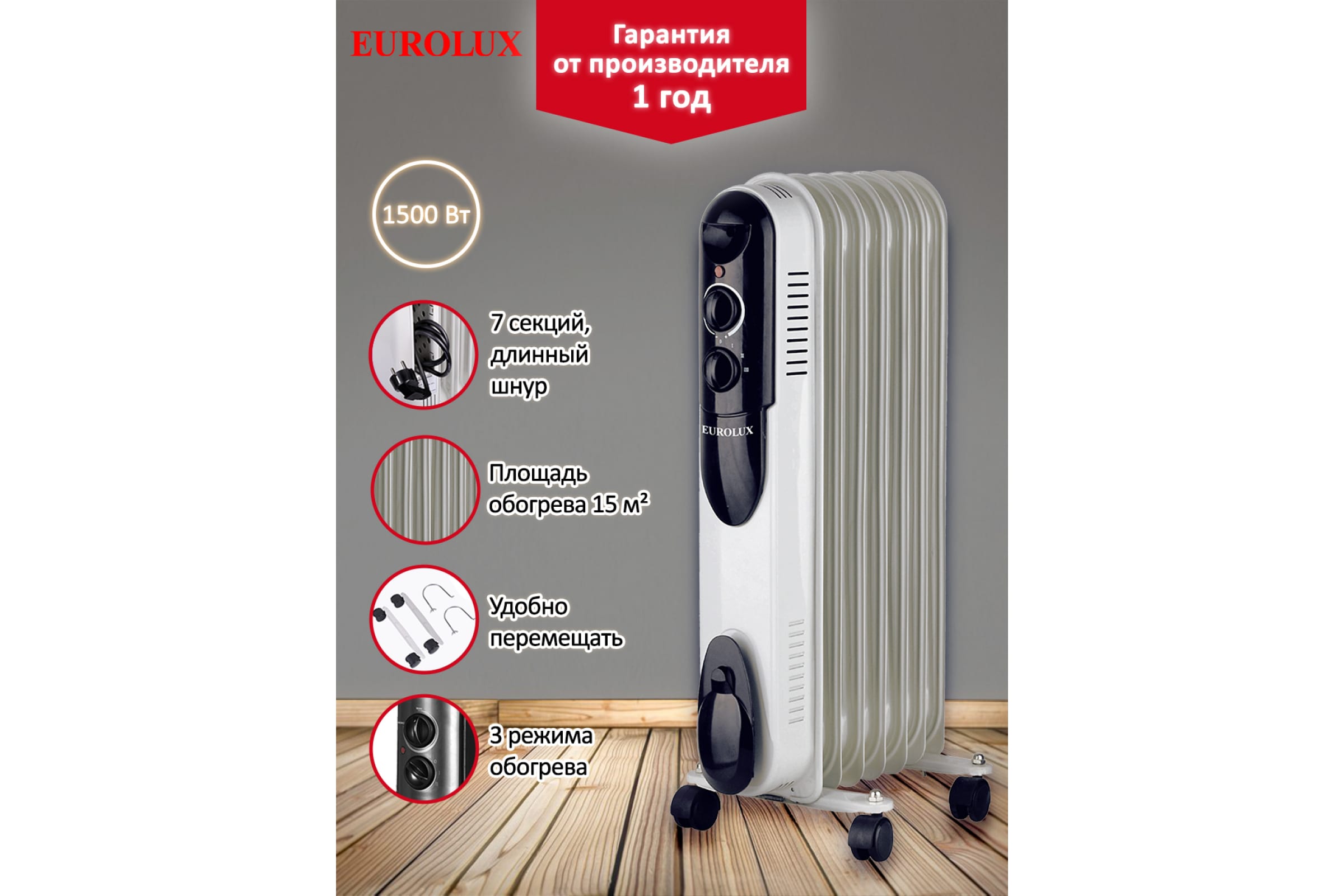 Масляный радиатор Eurolux ОМПТ-EU-7H 67/3/18