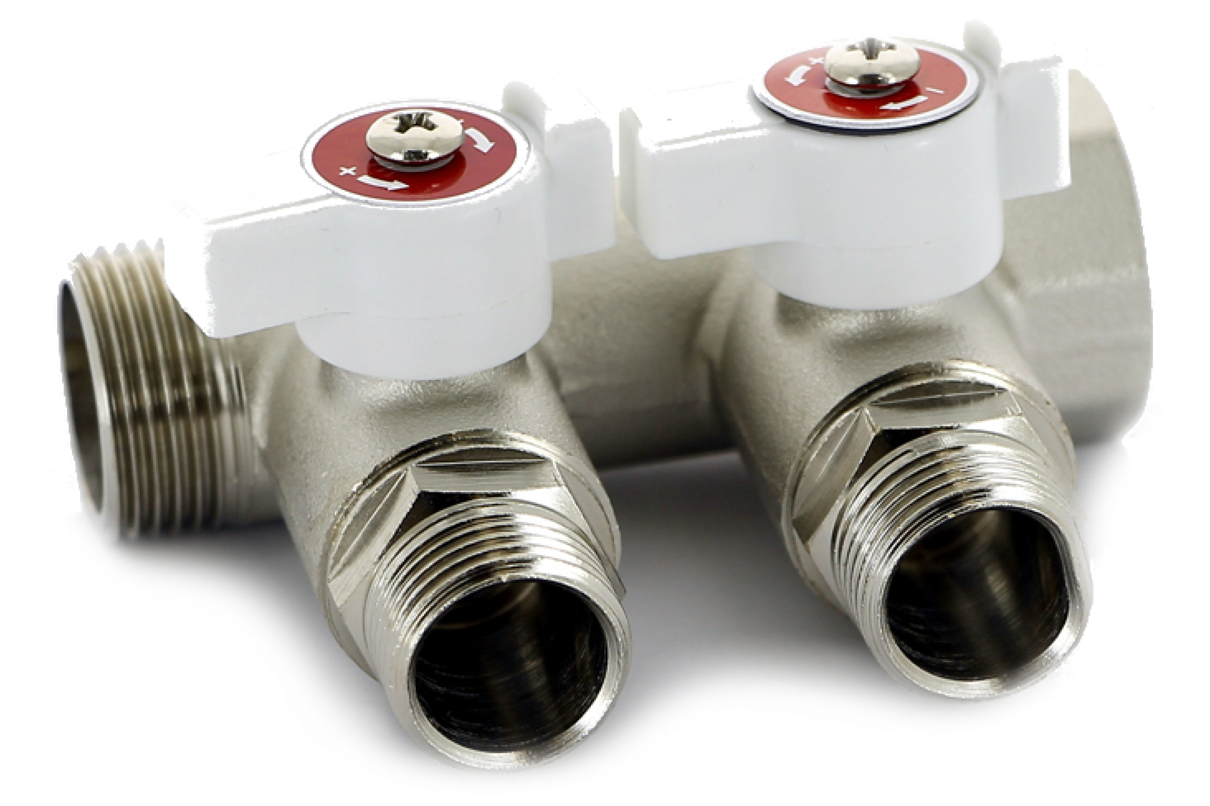Коллектор НВ 1 2х1/2 Н 40мм с кранами, никелированный Uni-Fitt 424N4220