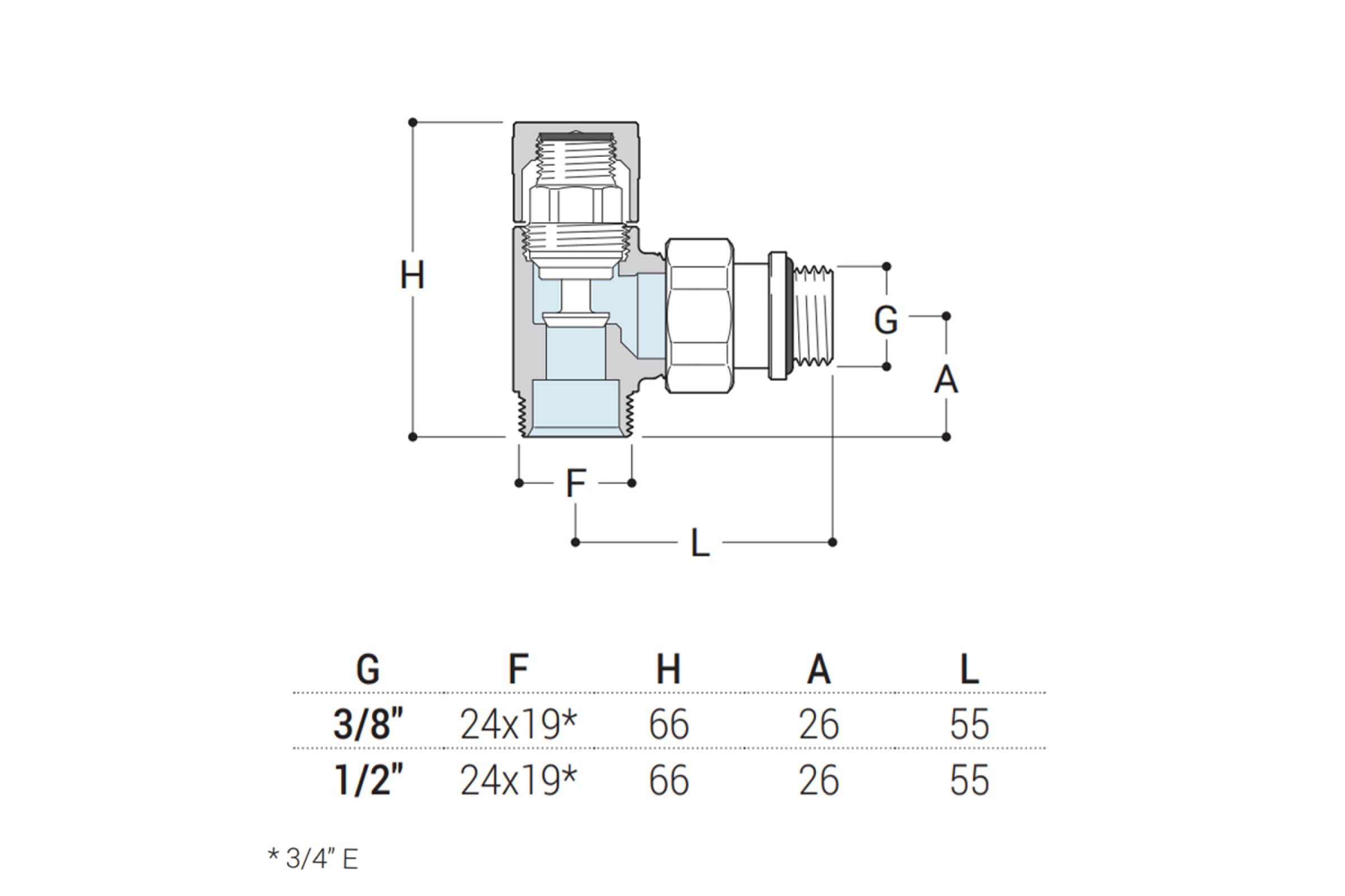 Угловой запорный вентиль SR Rubinetterie Tondera 1/2"х3/4" E, хром 0673-1500C0E0