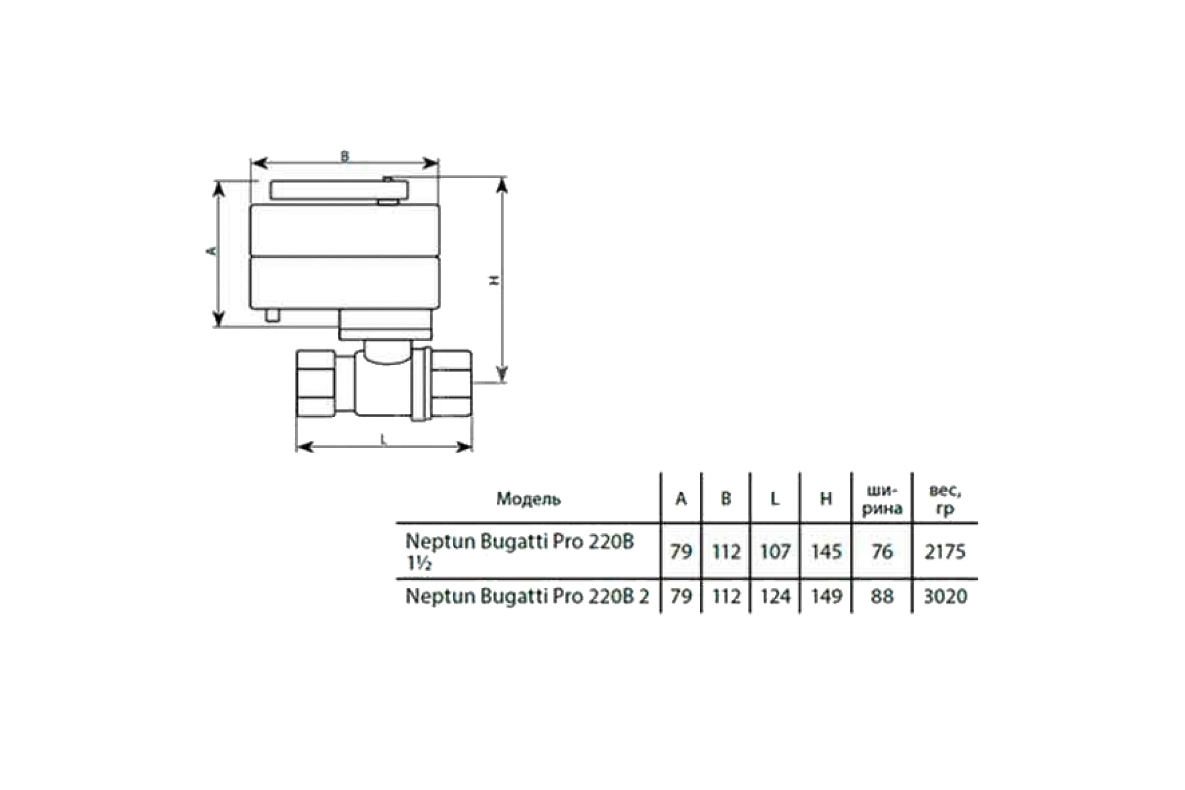 Шаровый кран с электроприводом Neptun Bugatti Pro 220 B, 2 012925