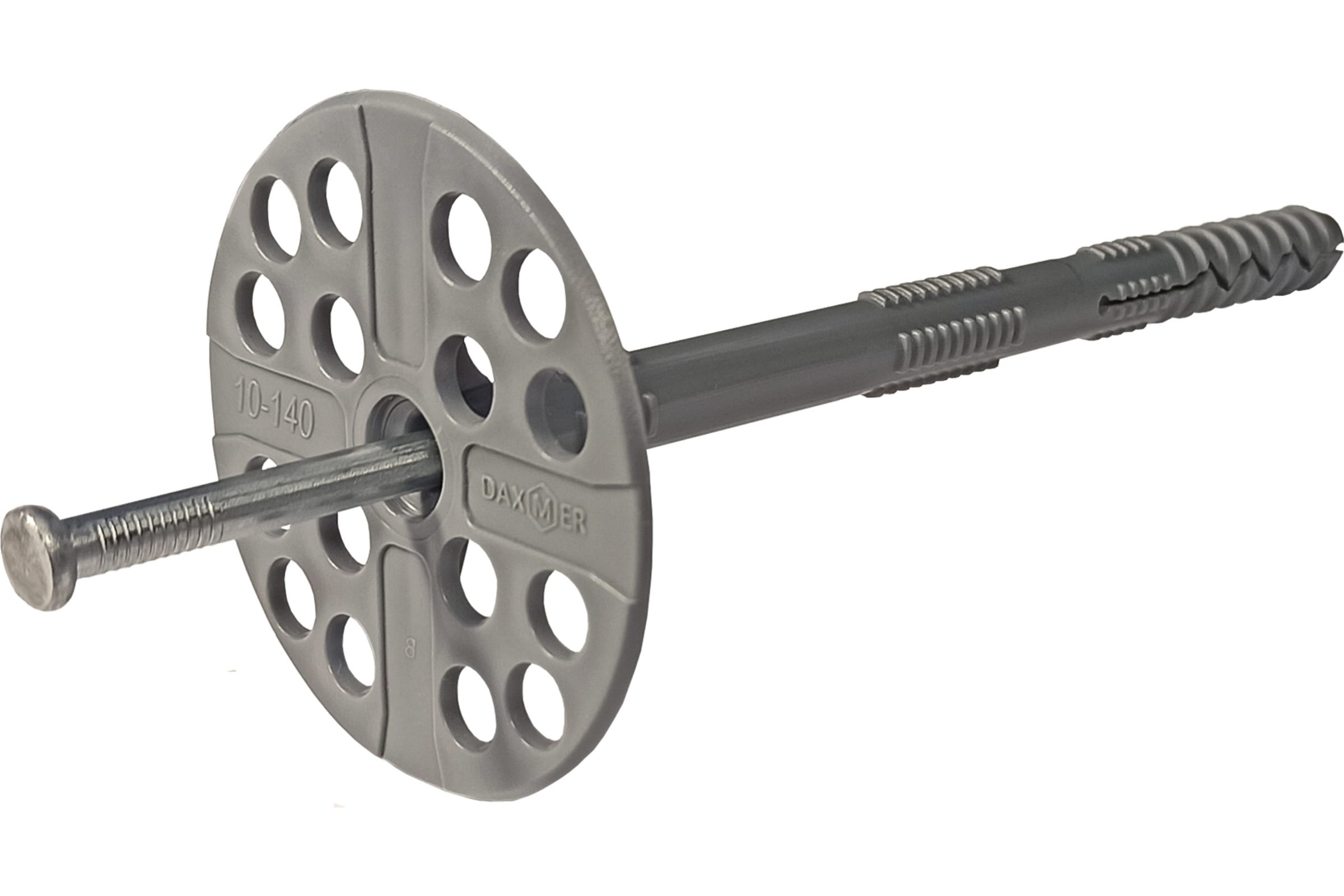 Дюбель Daxmer IZM 10х140 с мет. гвоздем 334772 используется для крепления минваты, пенополистирола, пенопласта и прочих теплоизоляционных материалов к монолитному, шлакоблочному или кирпичному основанию. Устанавливается в предварительно высверленное от
