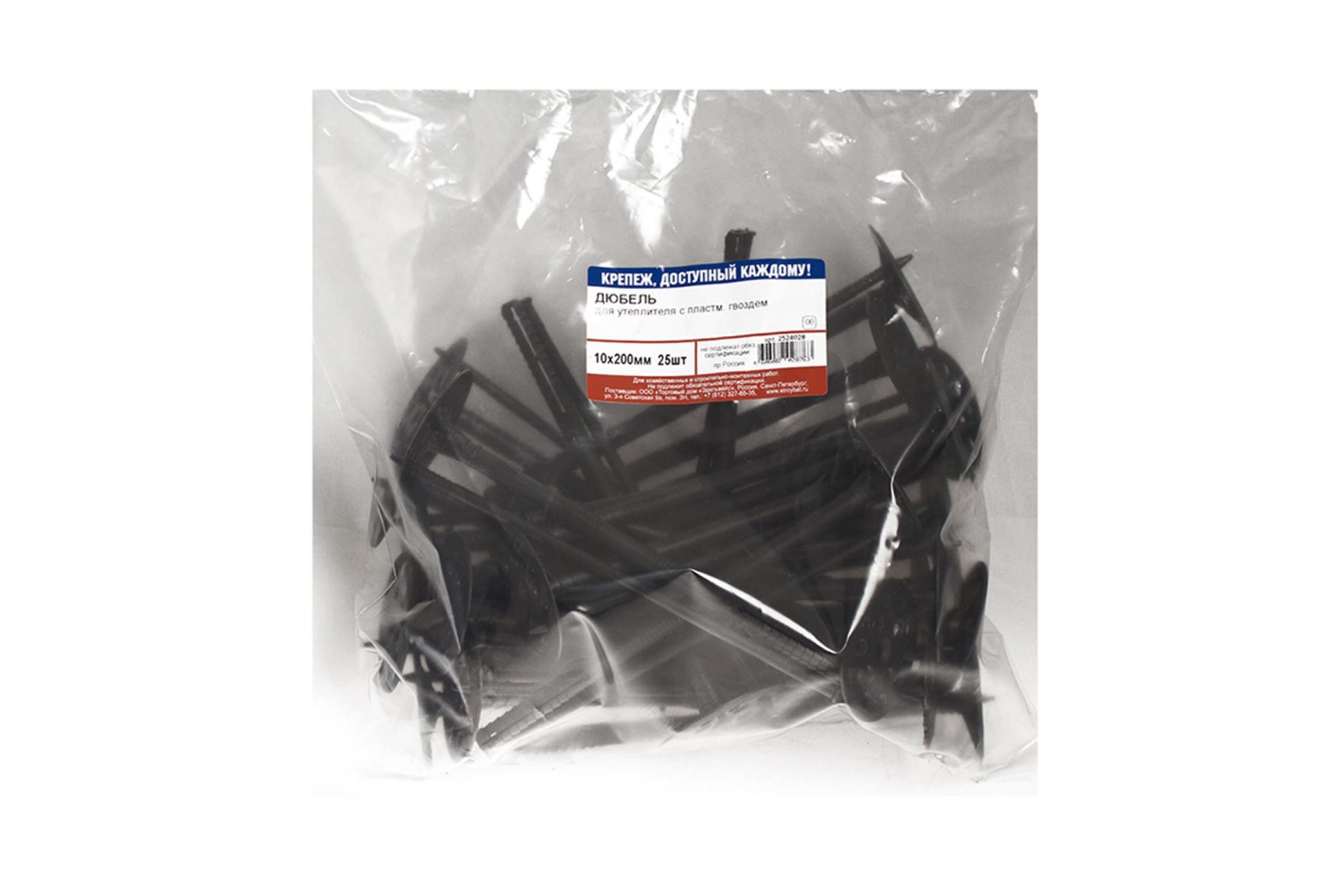 Дюбель для утеплителя с пластмассовым гвоздем Стройбат 10x200 25 шт 127580