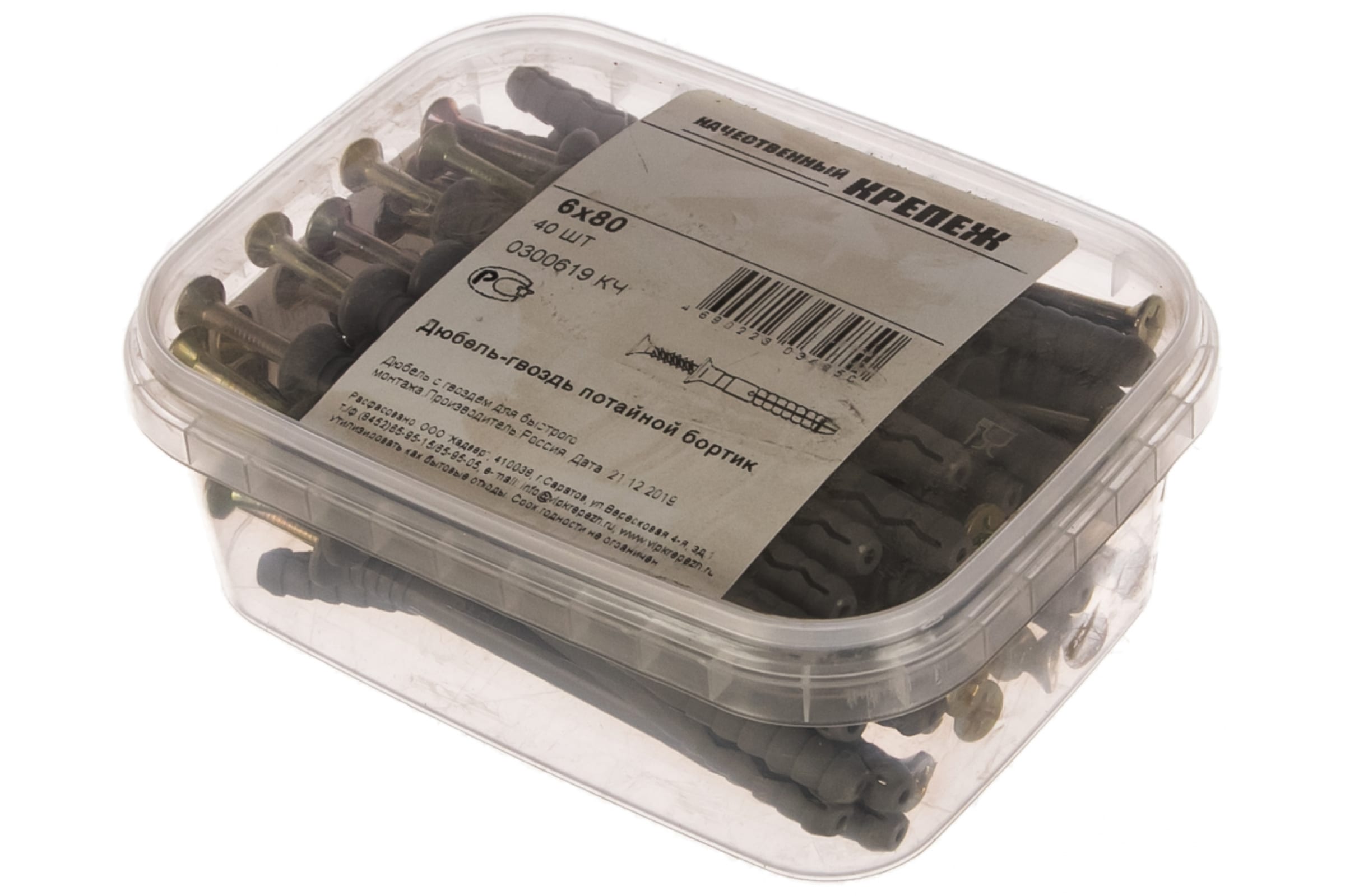 Дюбель-гвоздь Качественный КРЕПЕЖ потайной бортик, 6х80, 40 шт 0300619 КЧ