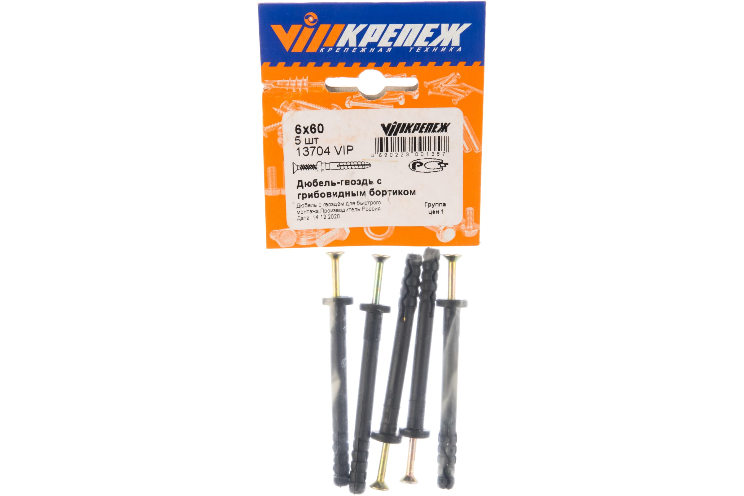 Дюбель-гвоздь с грибовидным бортиком VIPкрепеж 6х60, 5 шт. 13704 VIP
