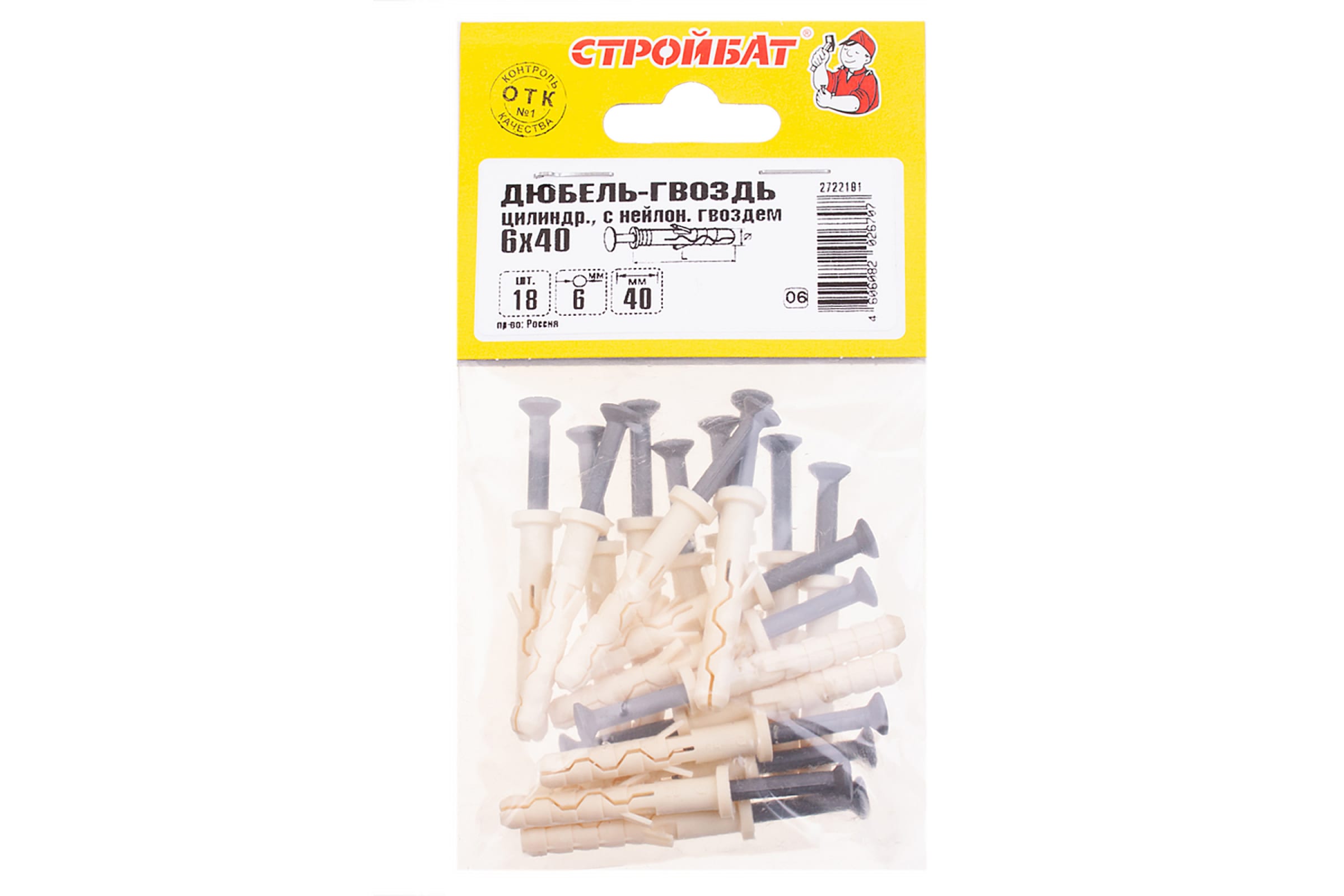 Дюбель-гвоздь с нейлон гвоздем цилиндрический Стройбат 6x40 18 шт 251010