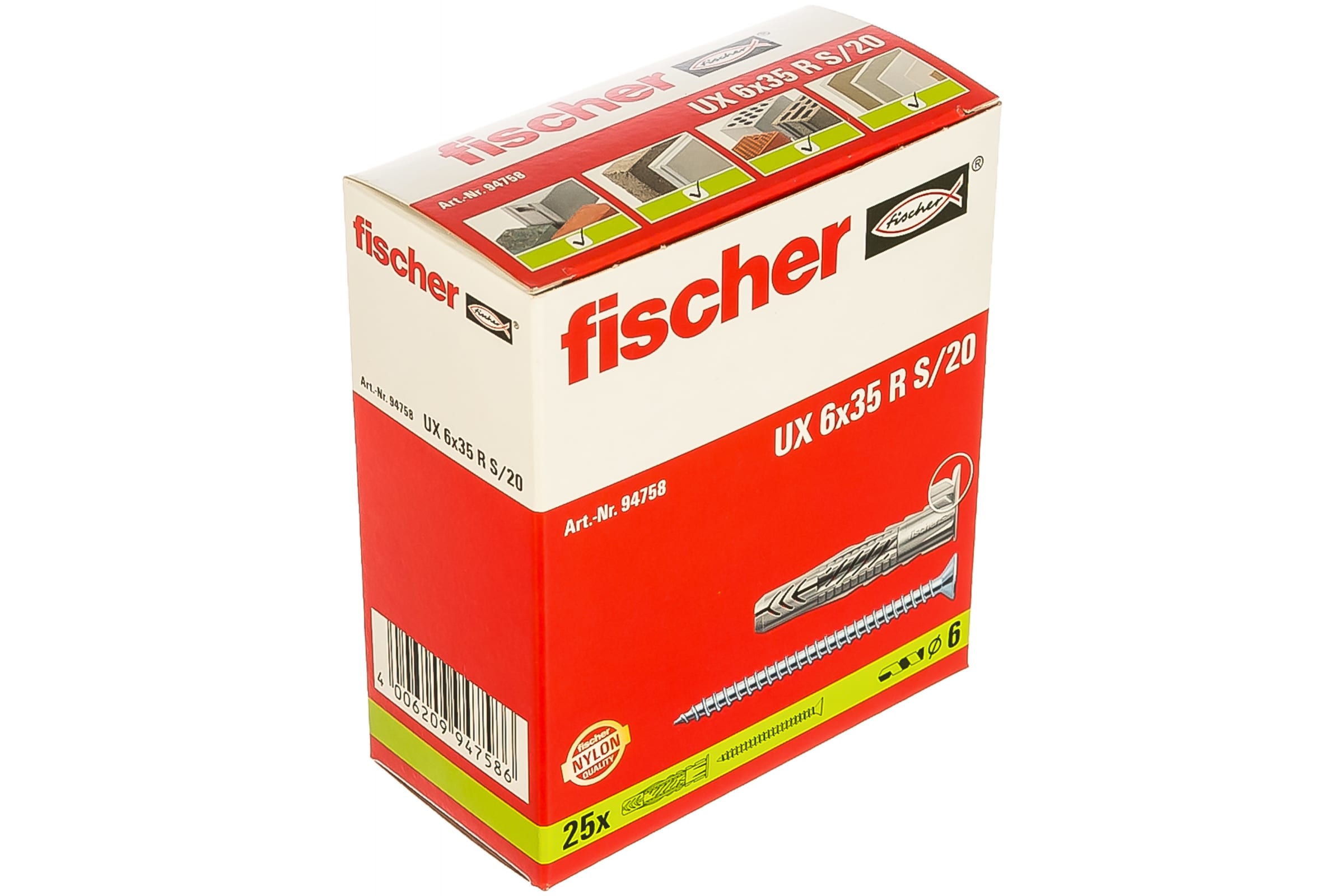 Дюбель с шурупом Fischer UX 6X35R S/20 25 штук 94758