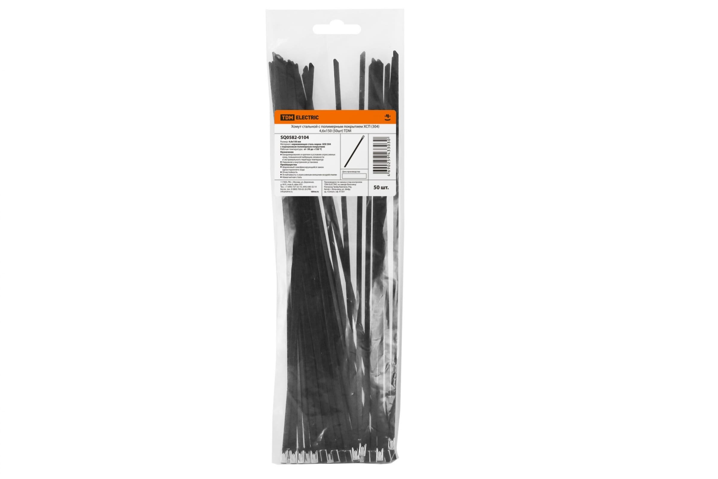 Стальной хомут с полимерным покрытием TDM ХСП 304 4,6х150, 50 шт. SQ0582-0104