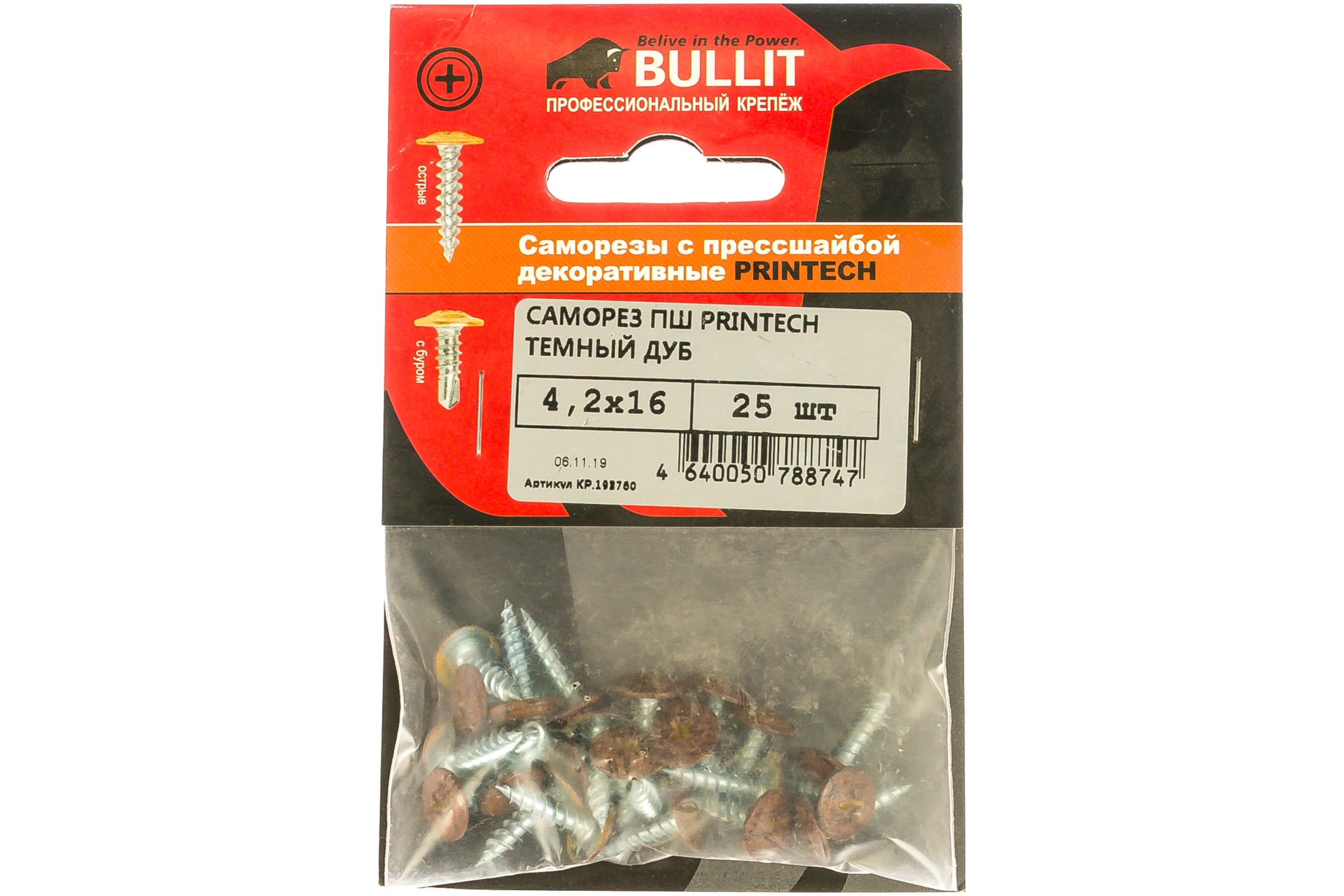 Саморез ПШ BULLIT PRINTECH 4,2х16 Темный дуб 25 шт. 14-0019960