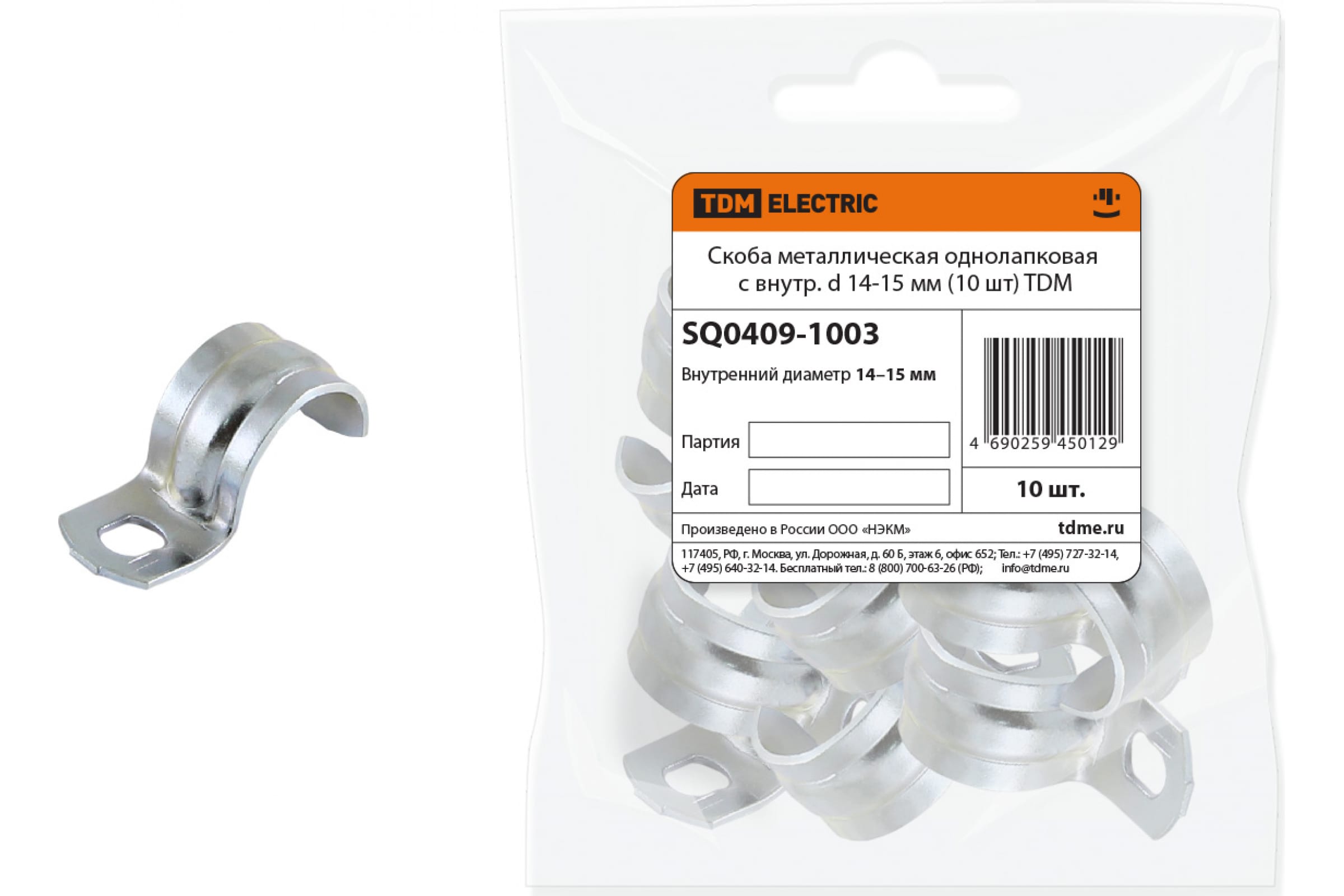 Металлическая однолапковая скоба TDM с внутр. d 14-15 мм SQ0409-1003