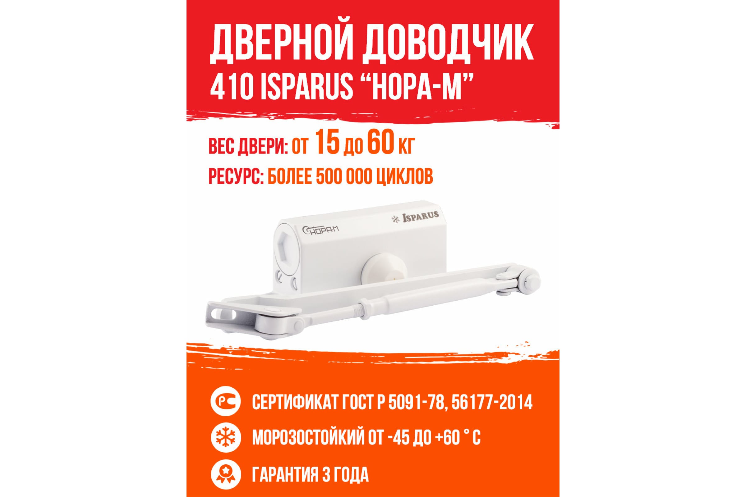 Дверной доводчик ISPARUS 410 морозостойкий, для дверей от 15 до 60 кг, белый 17196