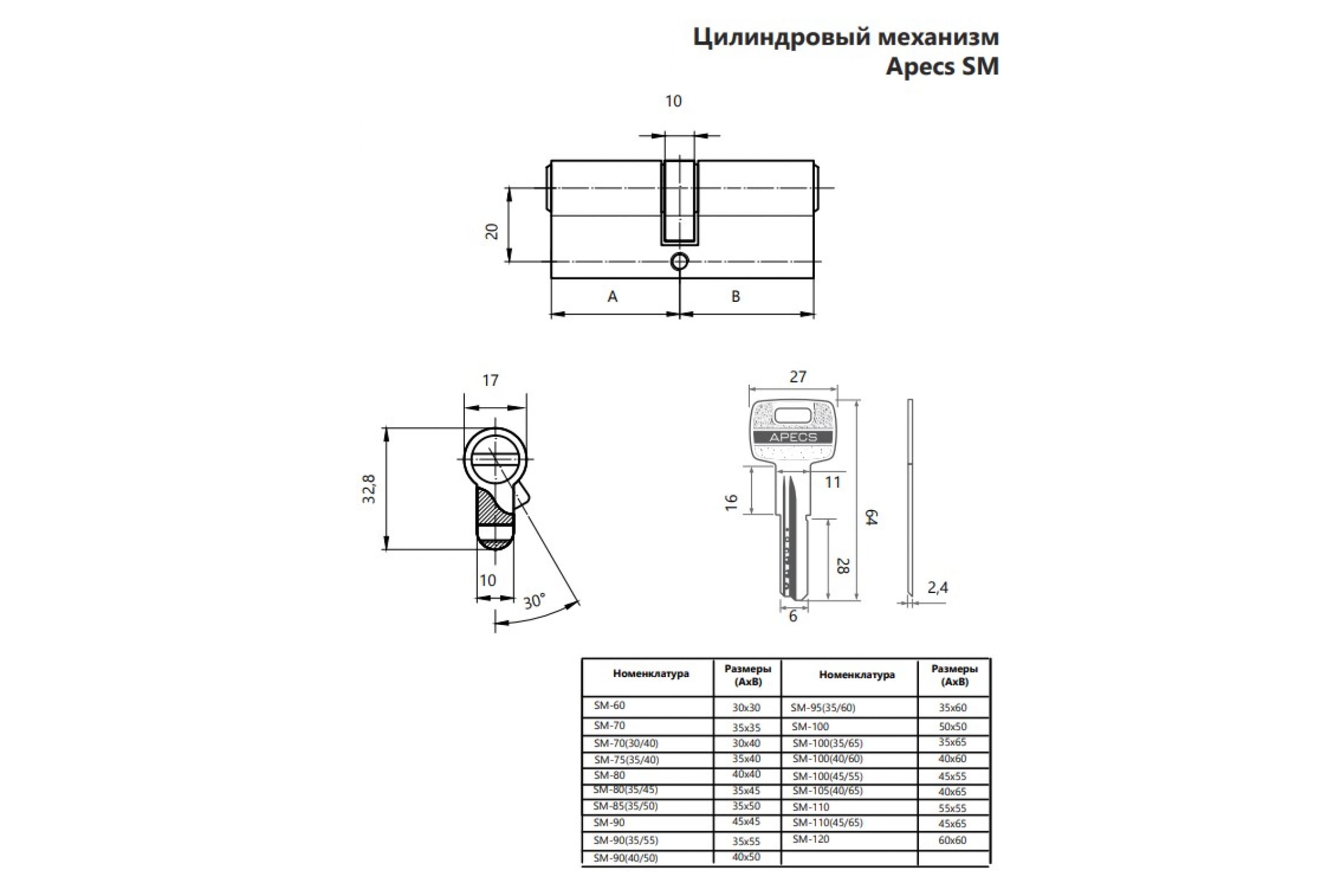 Цилиндровый механизм Apecs SM-110-G 3174
