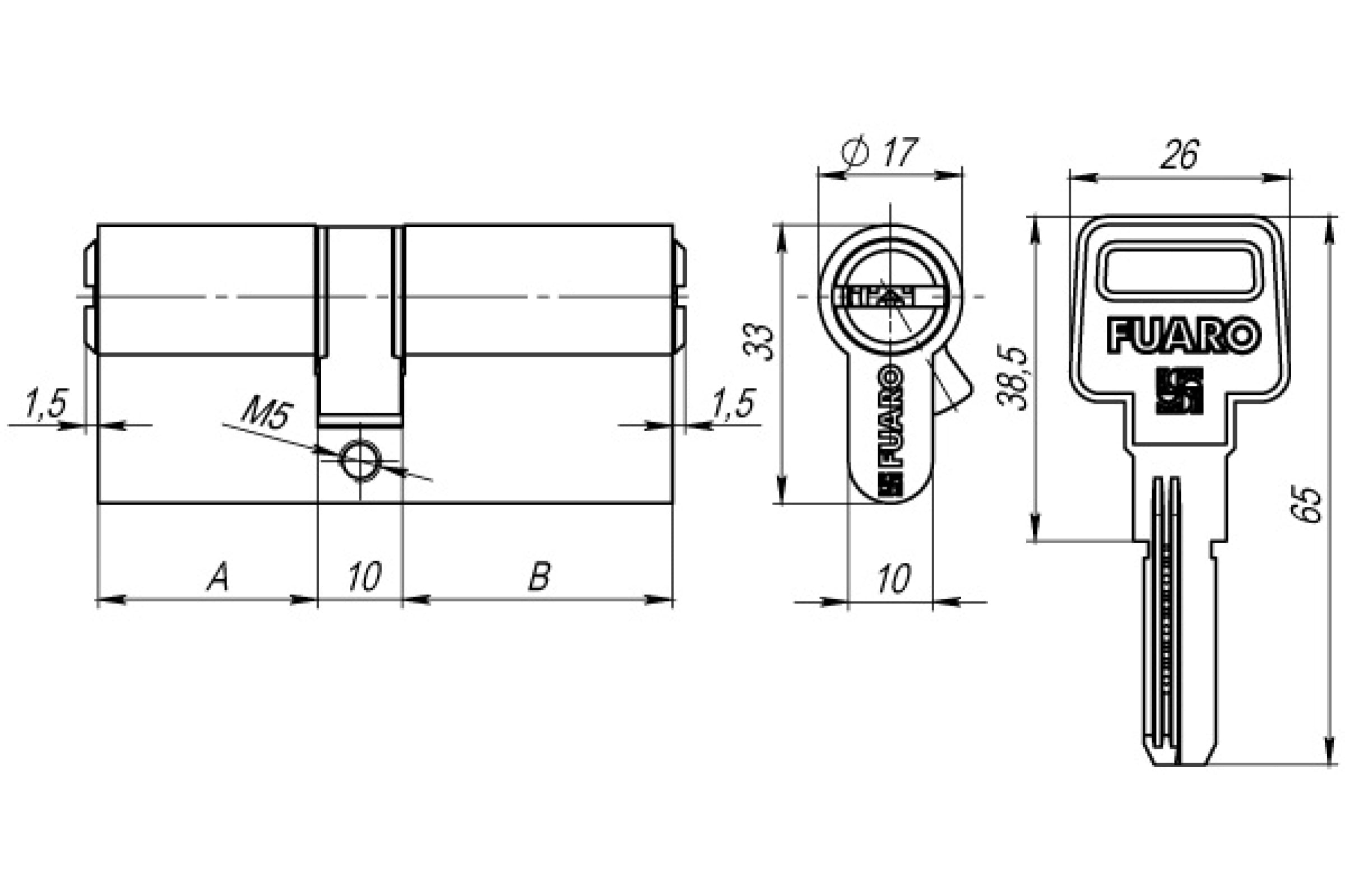 Цилиндровый механизм Fuaro R600/90 mm-BL /50+10+30/ PB латунь 5 кл. БЛИСТЕР 26071